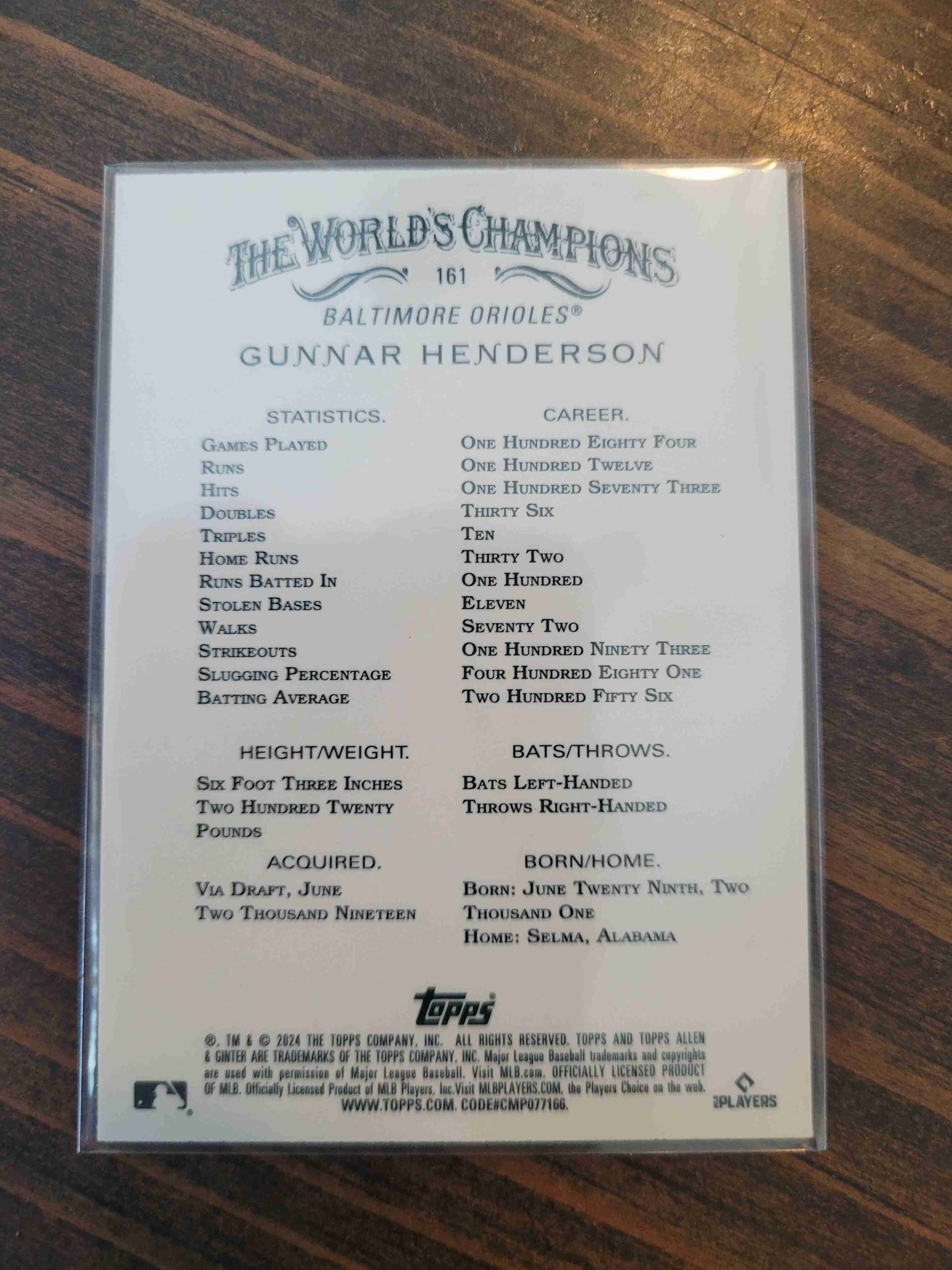 2024 TOPPS A&G CROME XFRACTOR GUNNAR HENDERSON #161