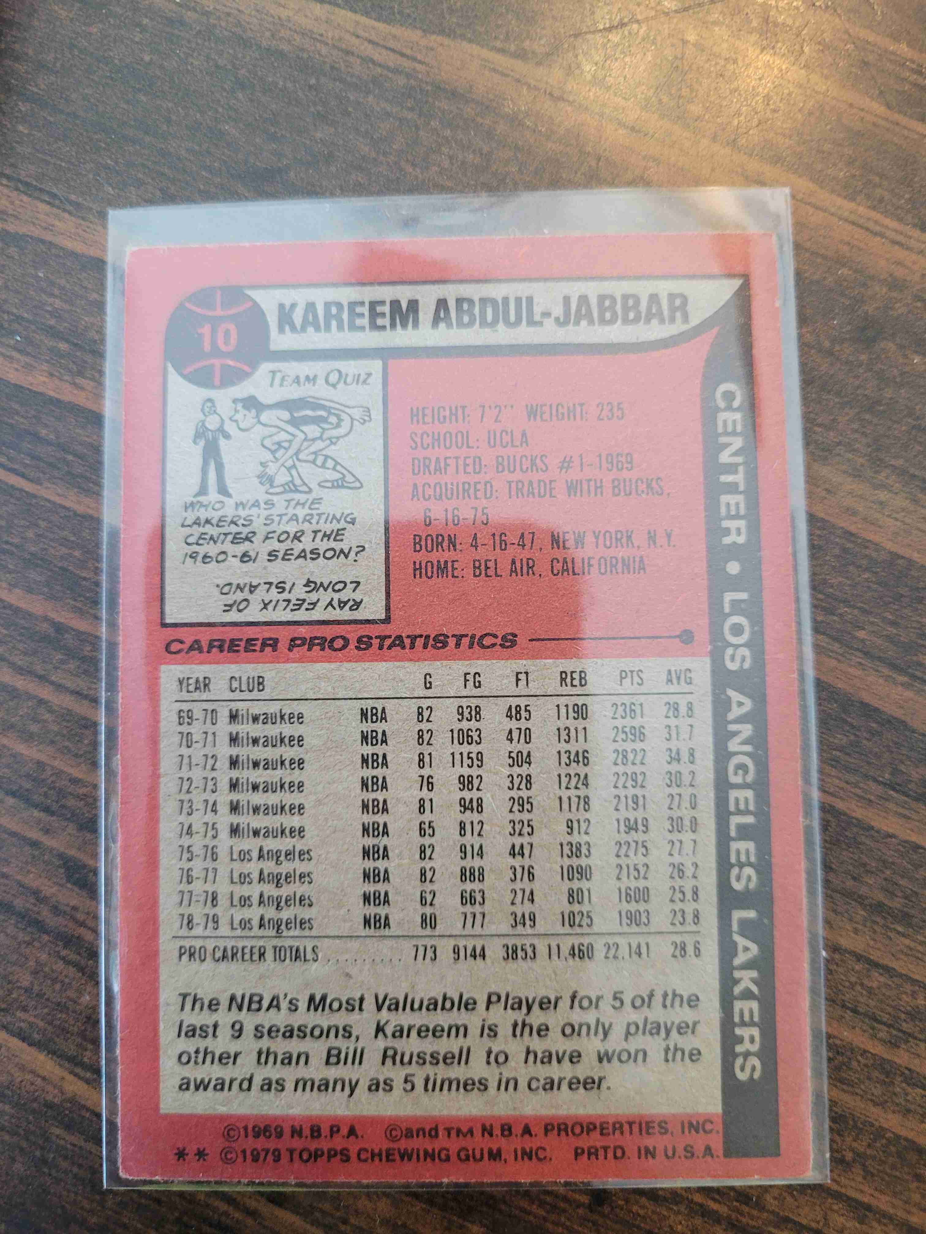 1979-80 TOPPS KAREEM ABDUL JABBAR #10