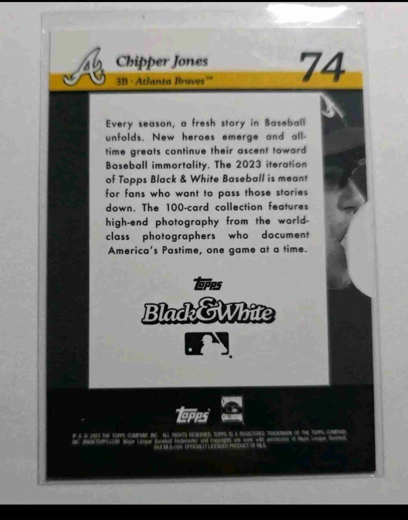 Chipper Jones 2023 Topps Black & White Photo Negative 07/99 #74 BRAVES. Card is in nr-Mt condition.