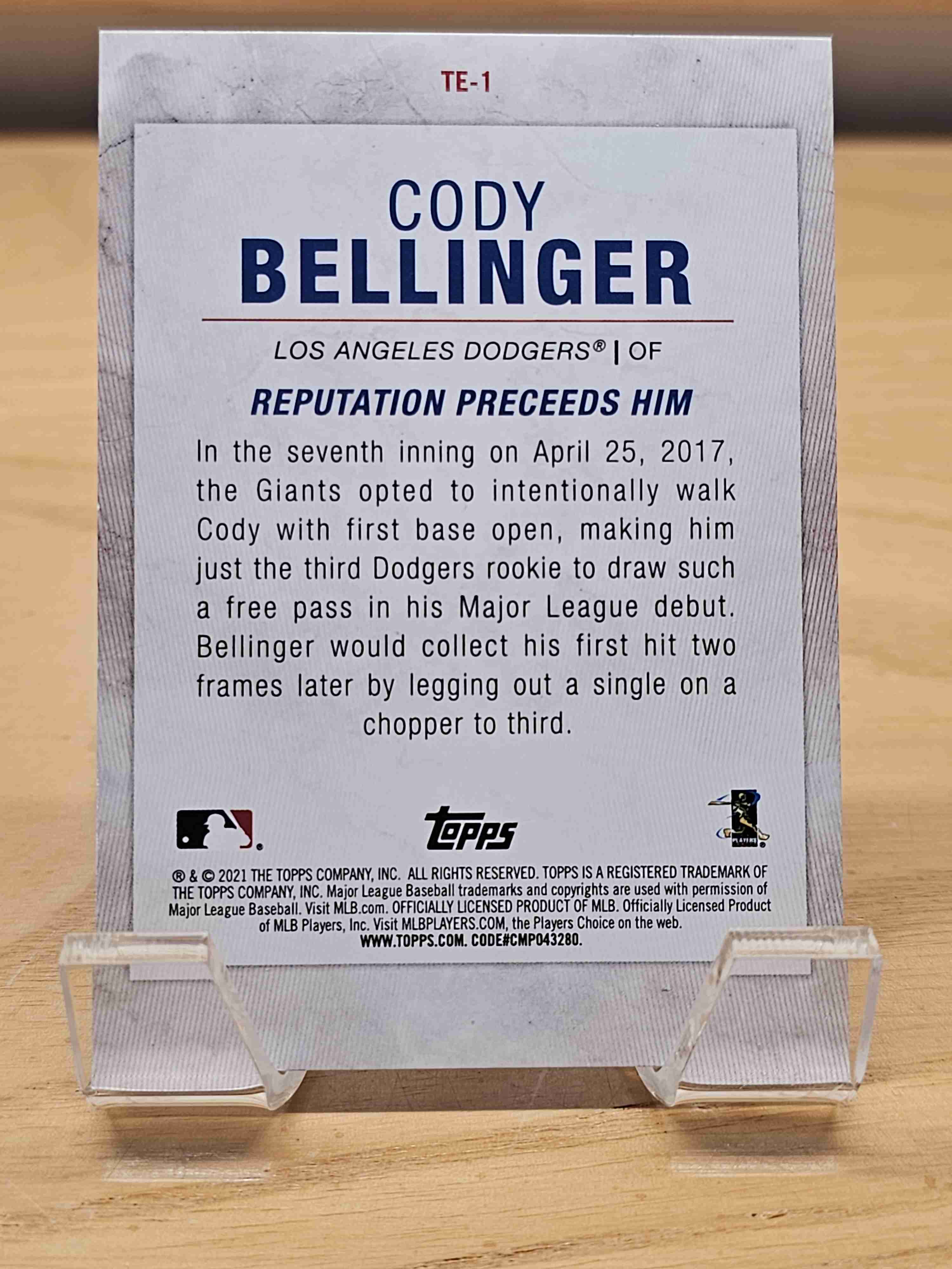 2021 Topps Baseball Cody Bellinger Highlights Reputation Proceeds Him Los Angeles Dodgers Card #TE-1