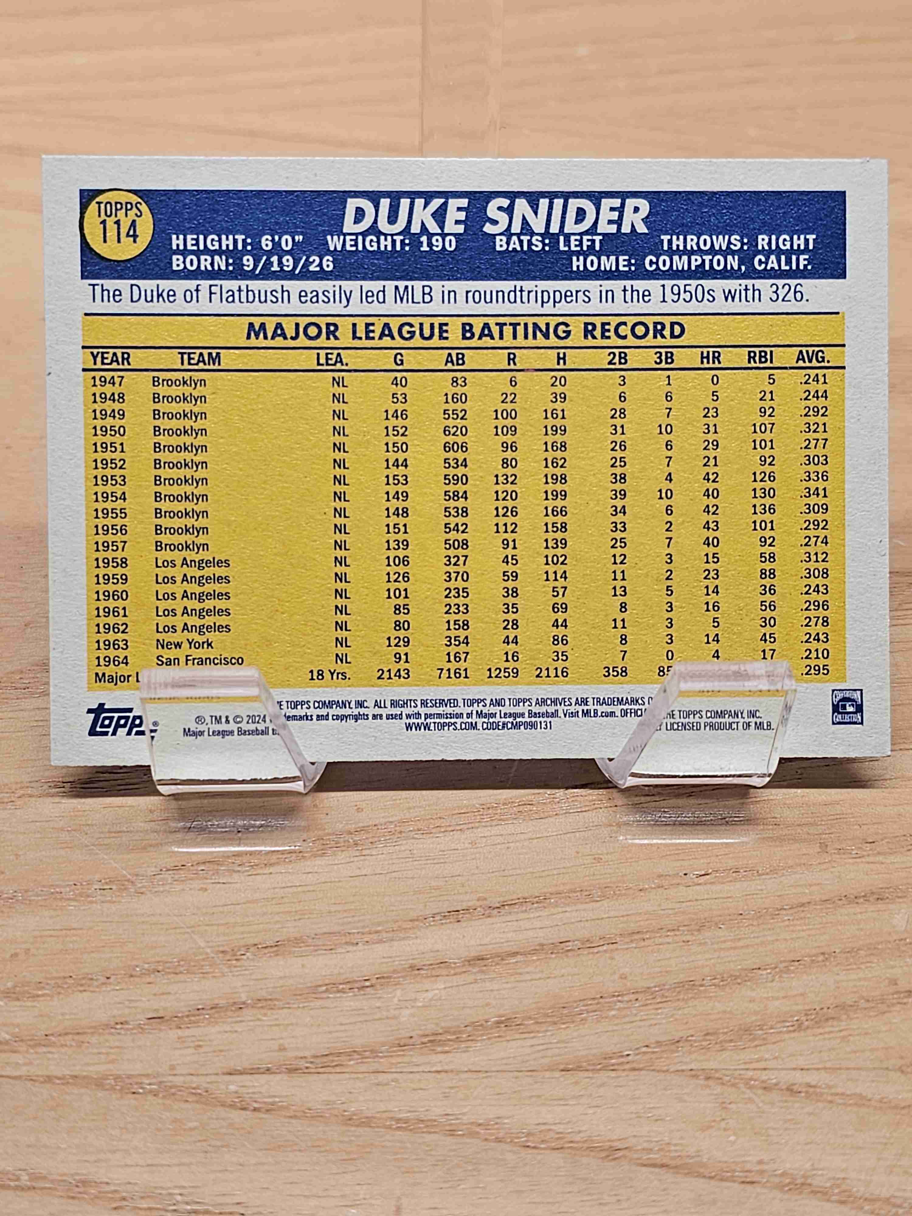 2024 Topps Archives Baseball Duke Snider Los Angeles Dodgers Card #114