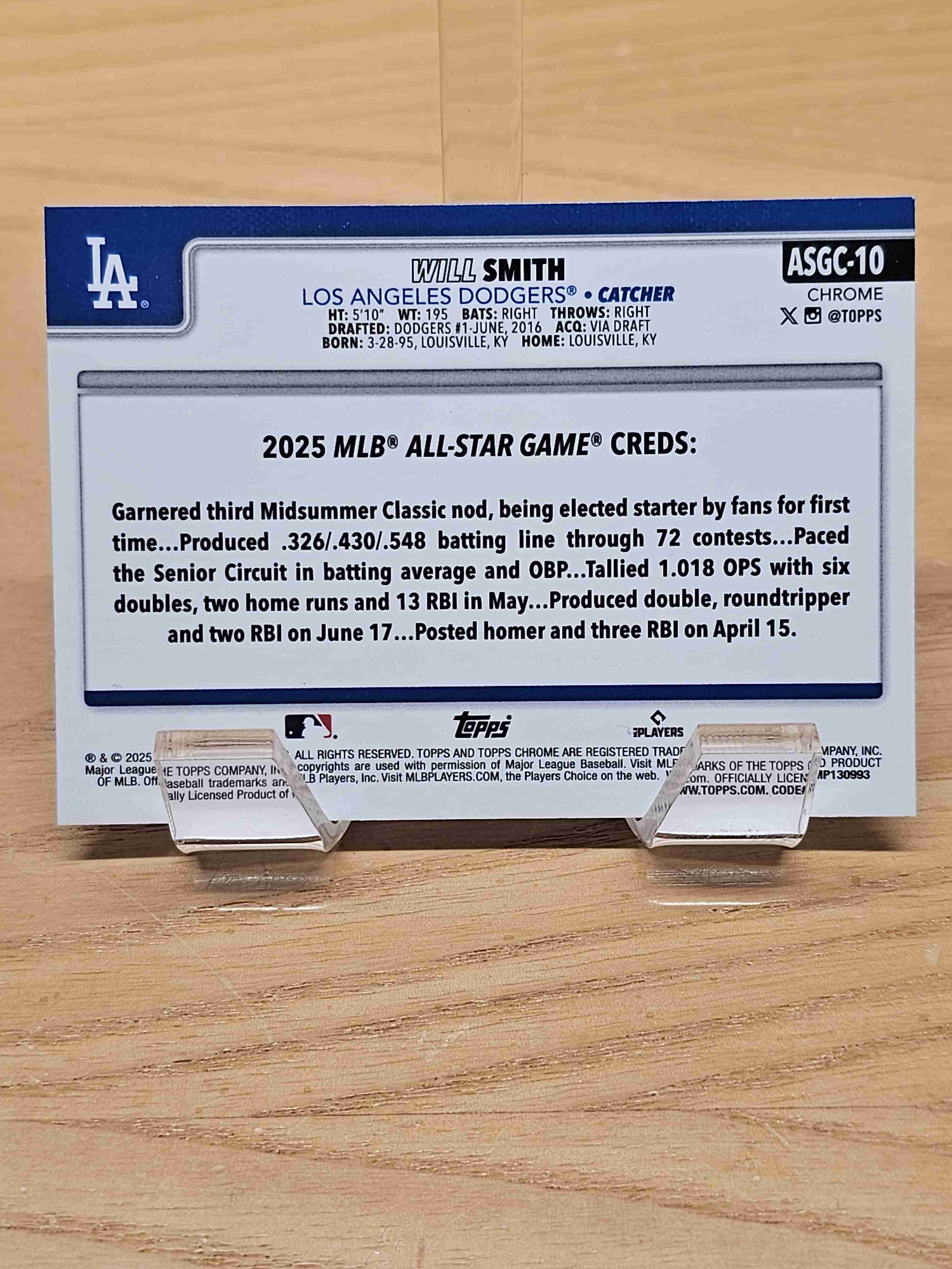 2025 Topps Chrome Update Series Baseball All-Star Game Will Smith Los Angeles Dodgers Card #ASGC-10