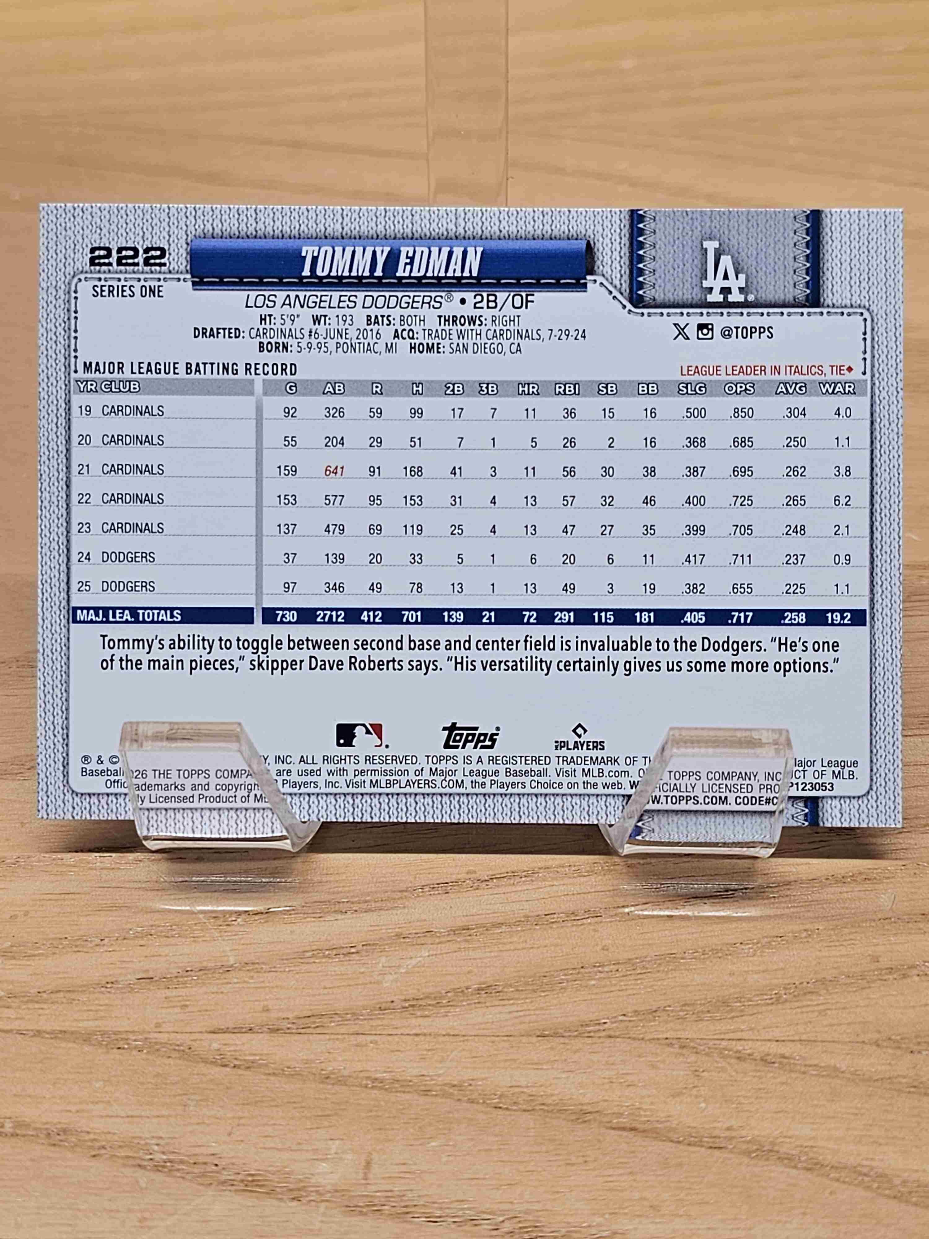 2026 Topps Series One Tommy Edman Dodgers #222