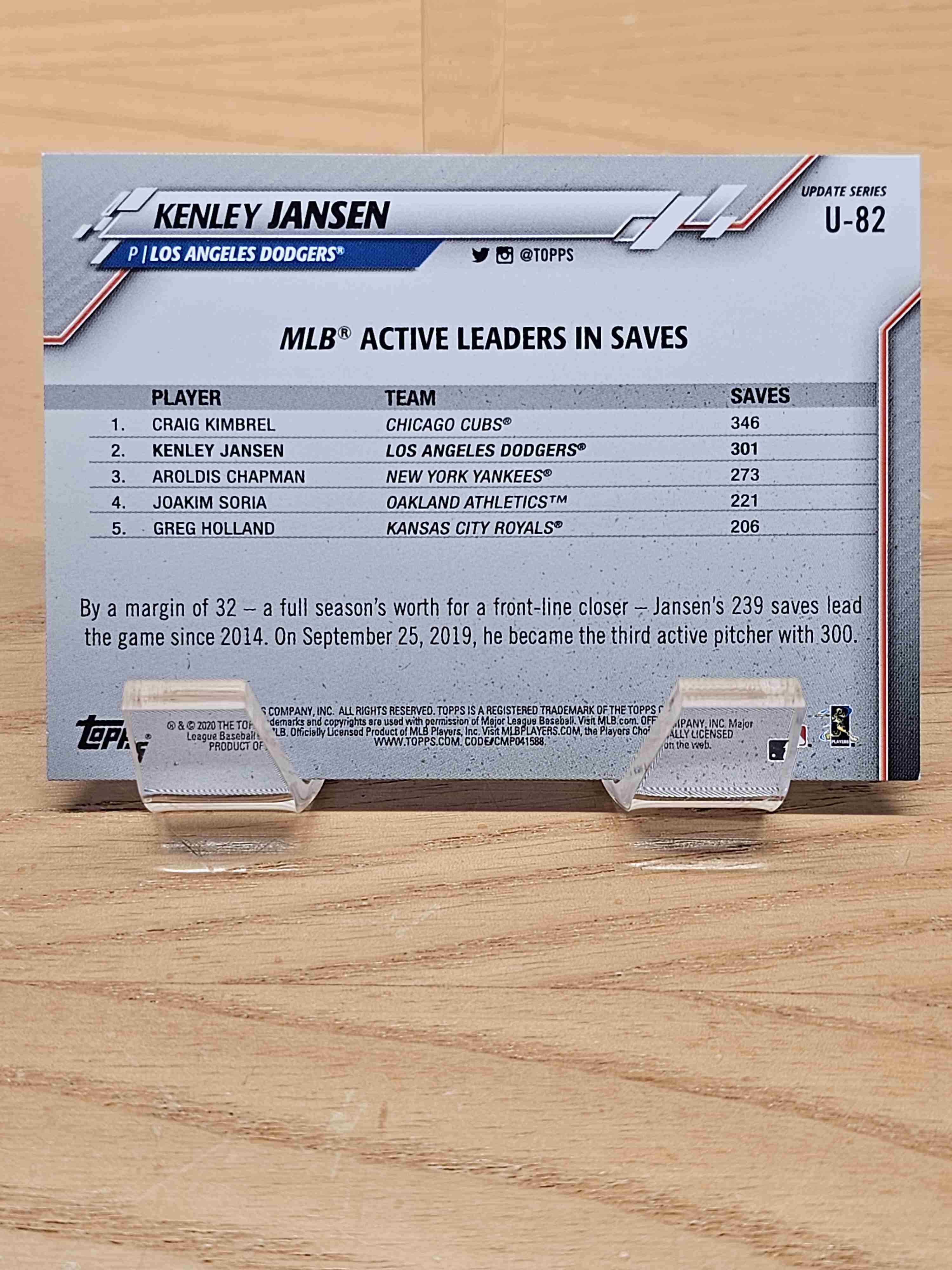 2020 Topps Update Series Baseball Active Leaders Kenley Jansen Los Angeles Dodgers Card #U-82