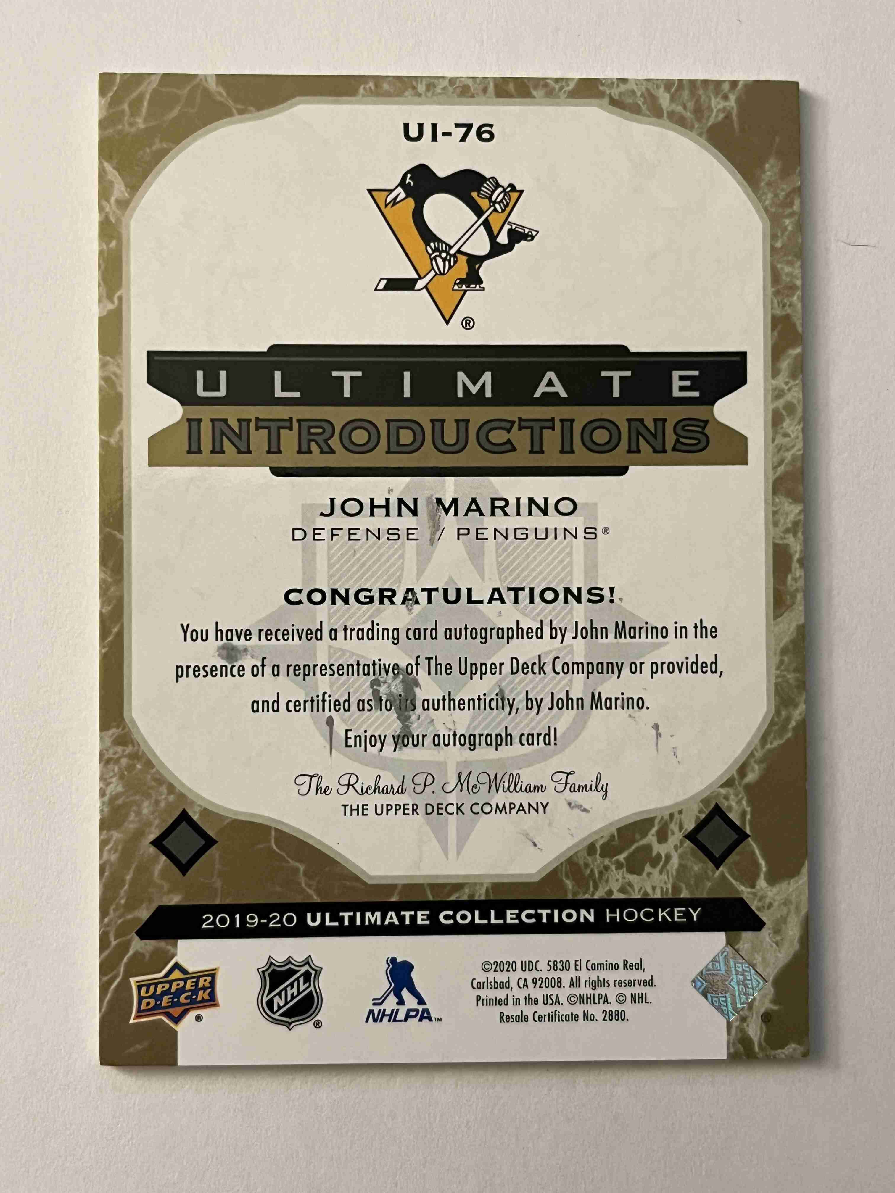 John Marino 2019-20 Ultimate Collection Autograph Silver
