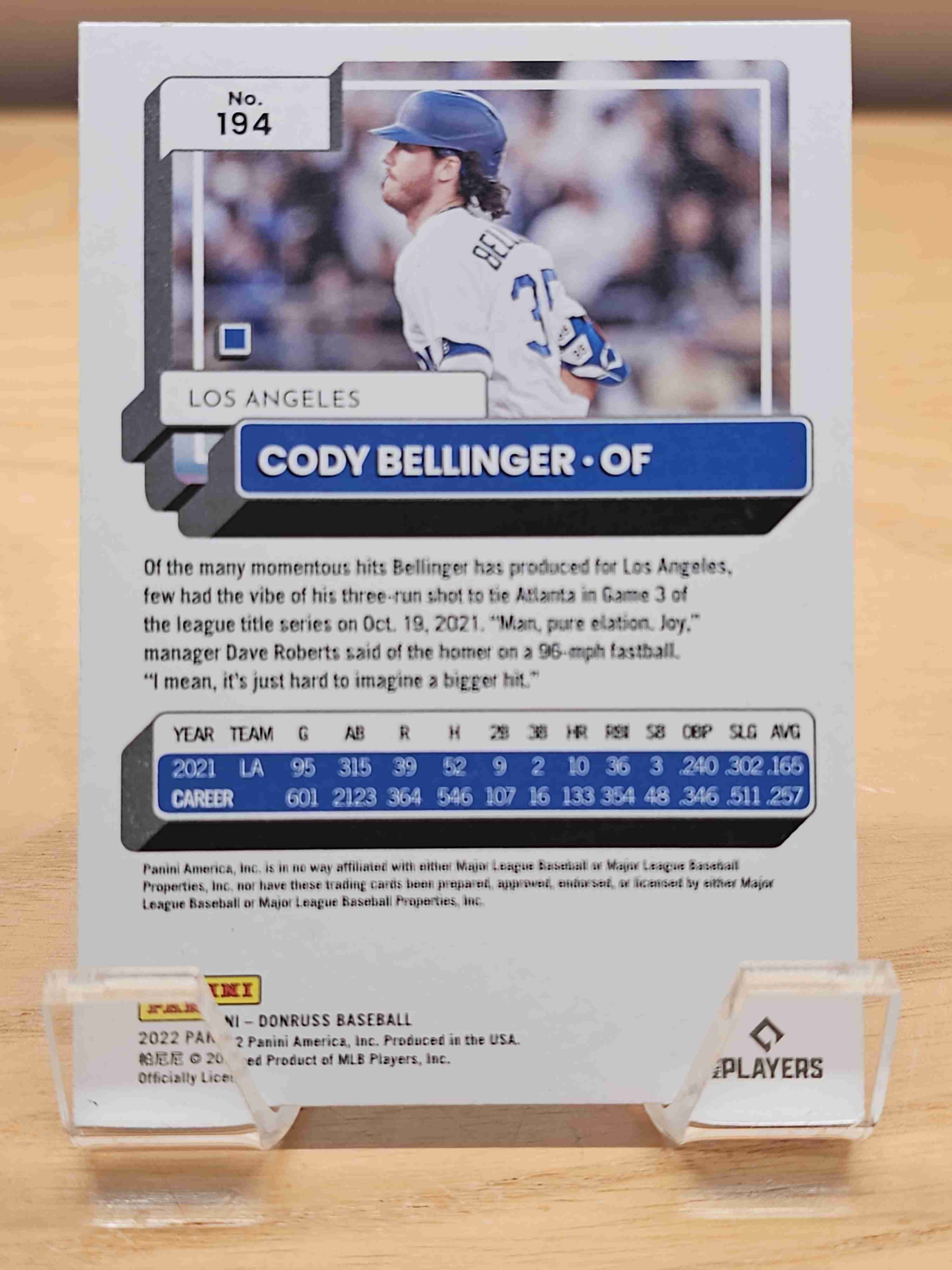 2022 Panini Donruss Red Holo Cody Bellinger Dodgers #194