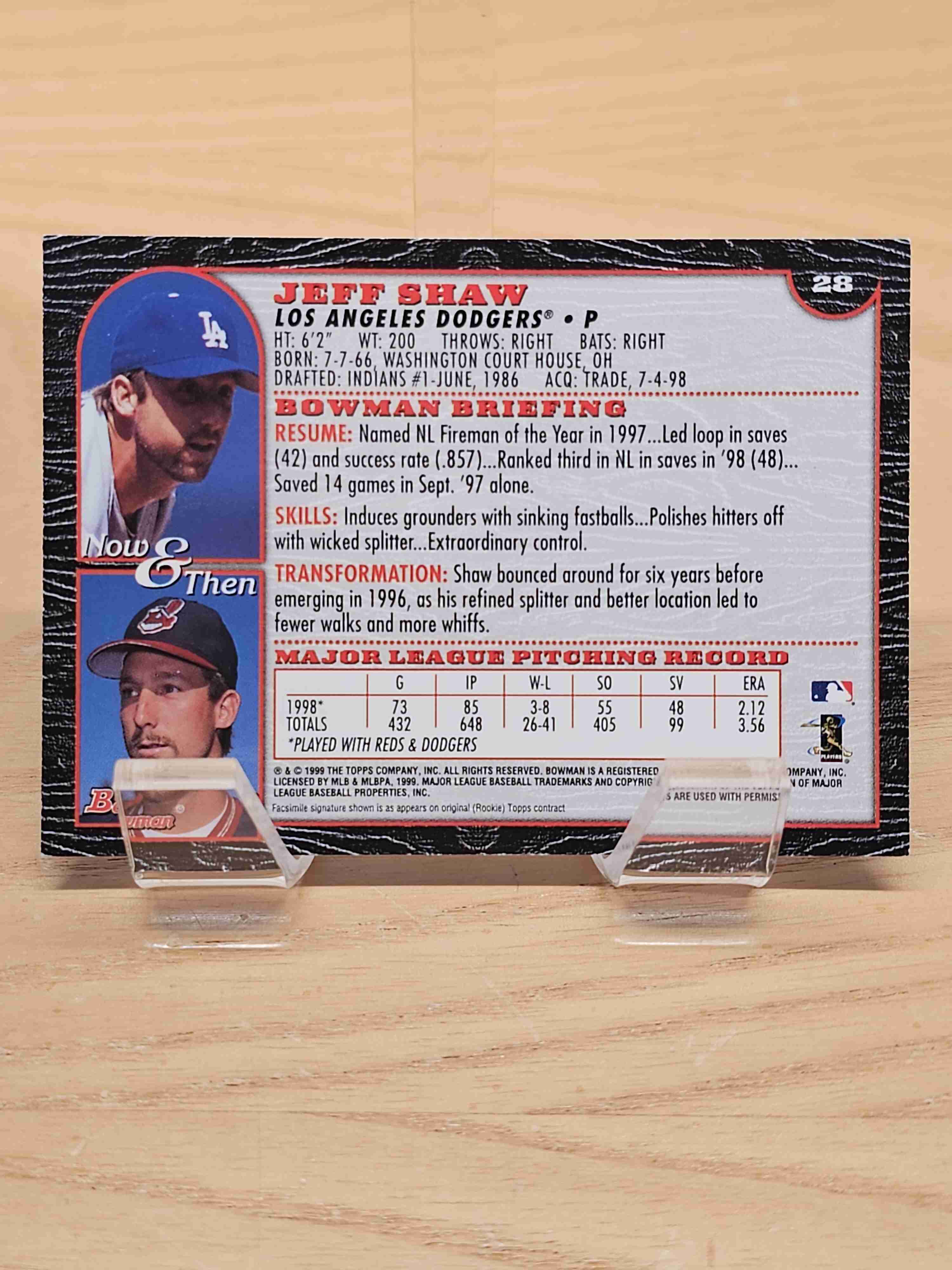 1999 Bowman Baseball Jeff Shaw Los Angeles Dodgers Card #28