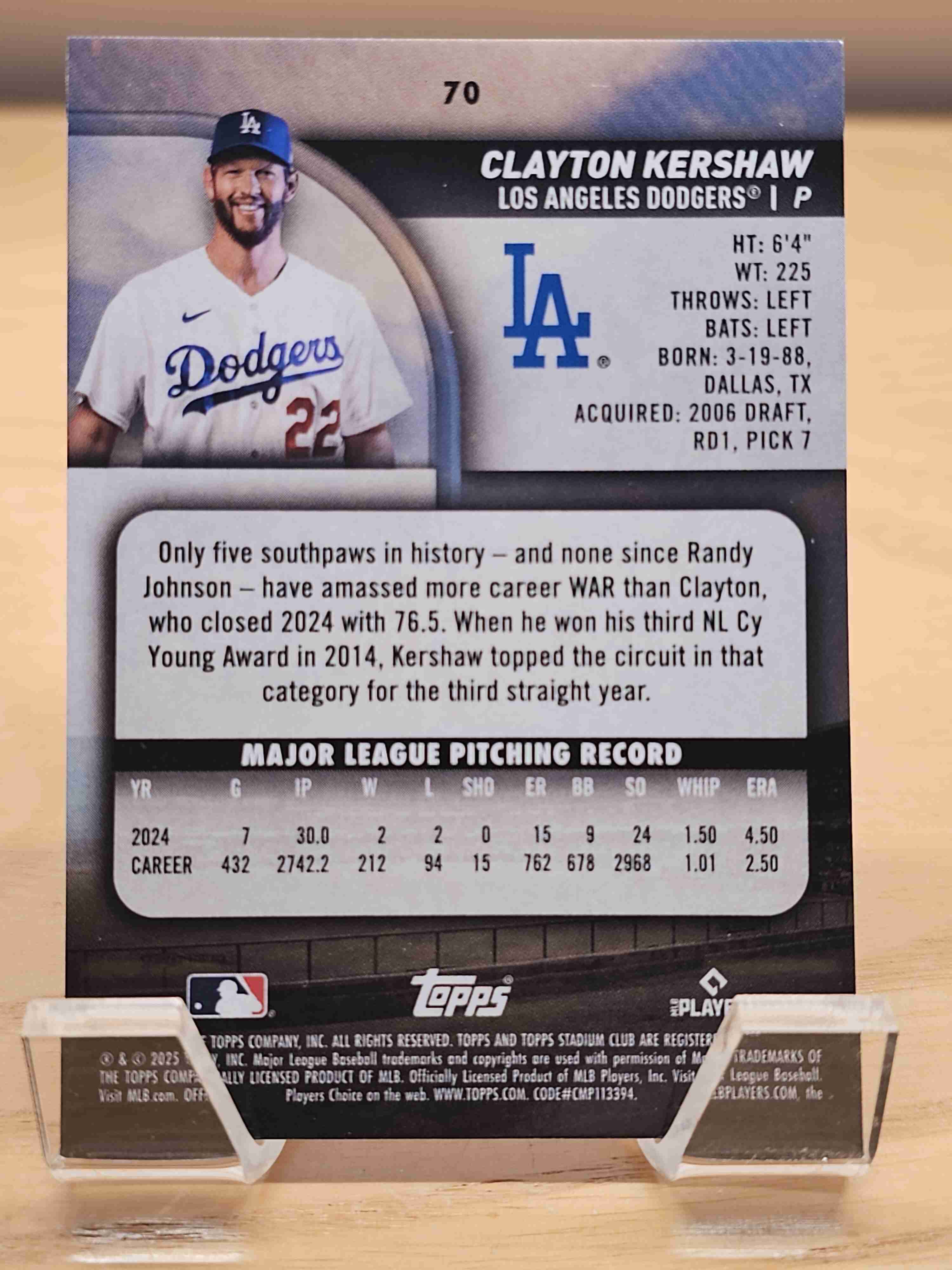 2025 Topps Stadium Club Clayton Kershaw Dodgers #70