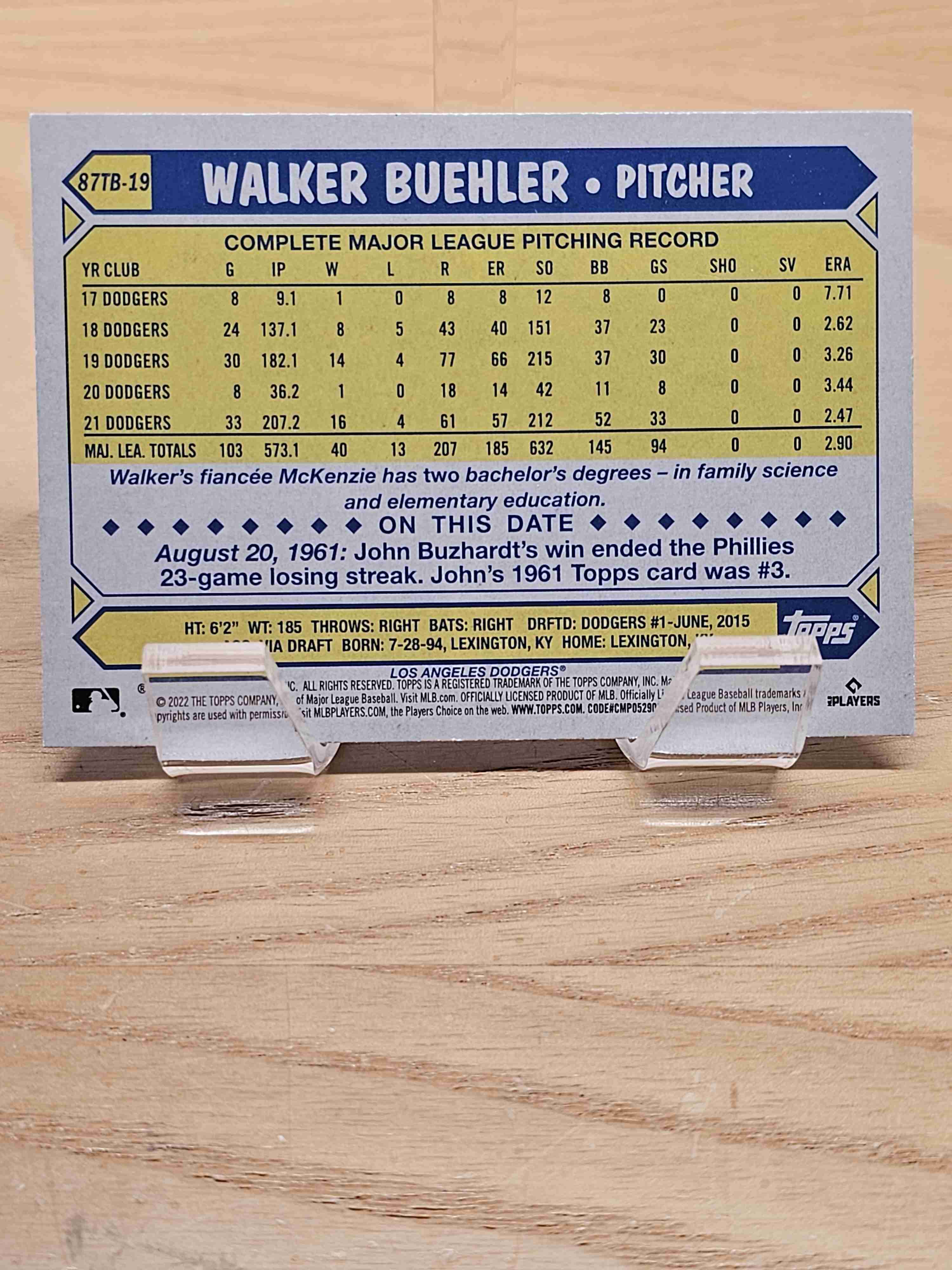 2022 Topps 1987 Topps 35th Anniversary Walker Buehler Dodge