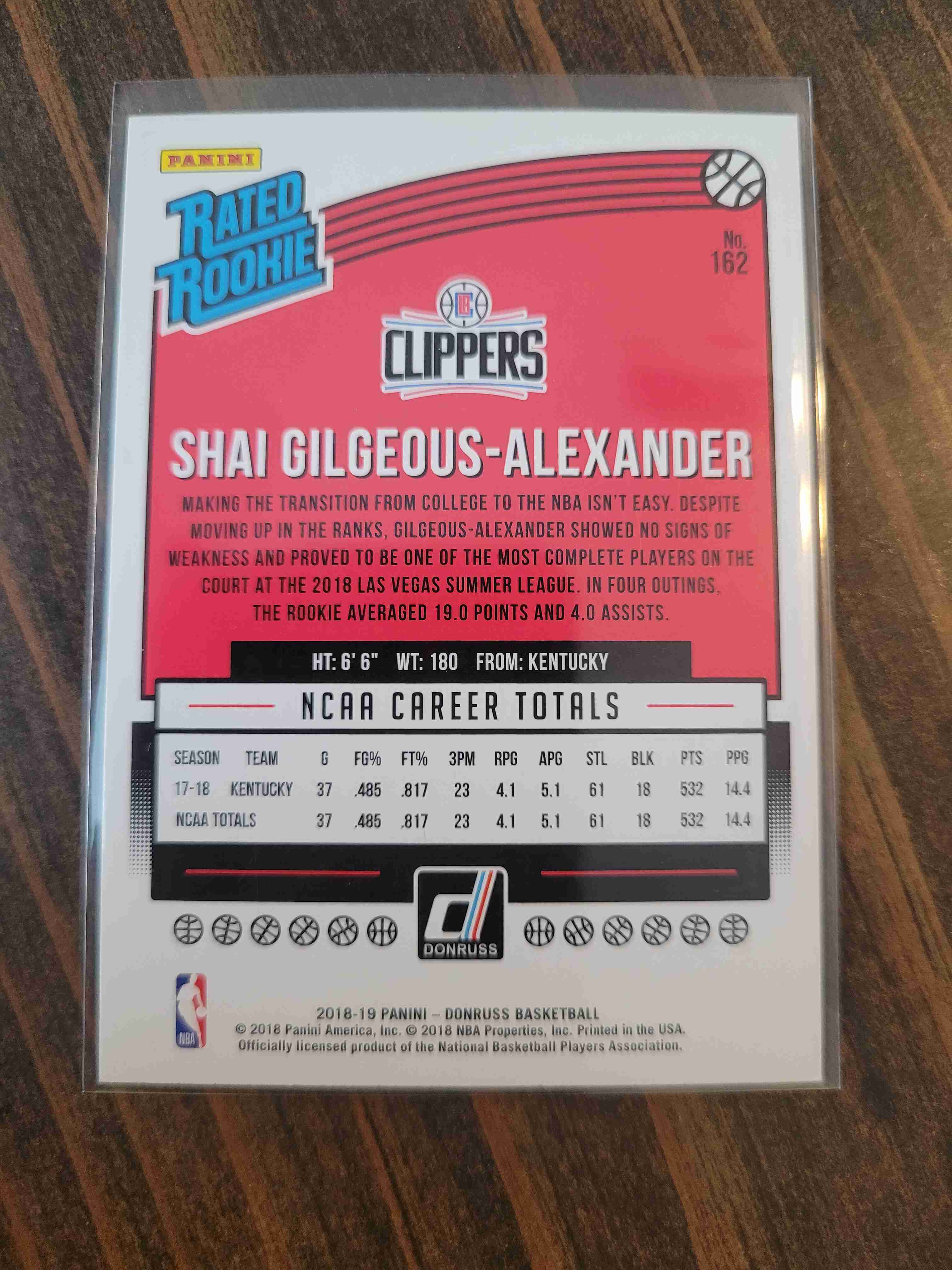 2018-19 DONRUSS SHAI GILGEOUS ALLEXANDER #162 ROOKIE