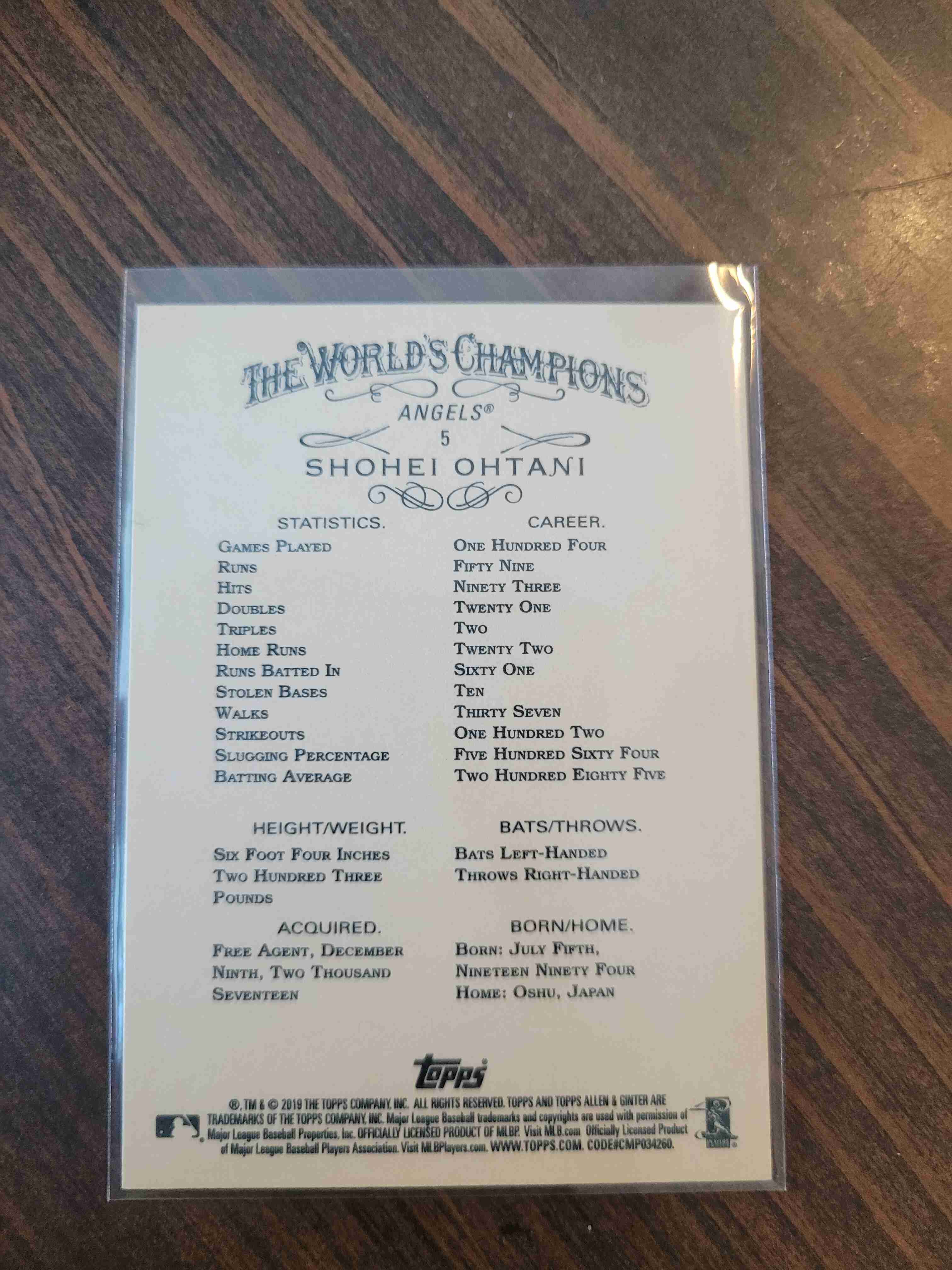 2019TOPPS A&G SHOHEI OHTANI #5