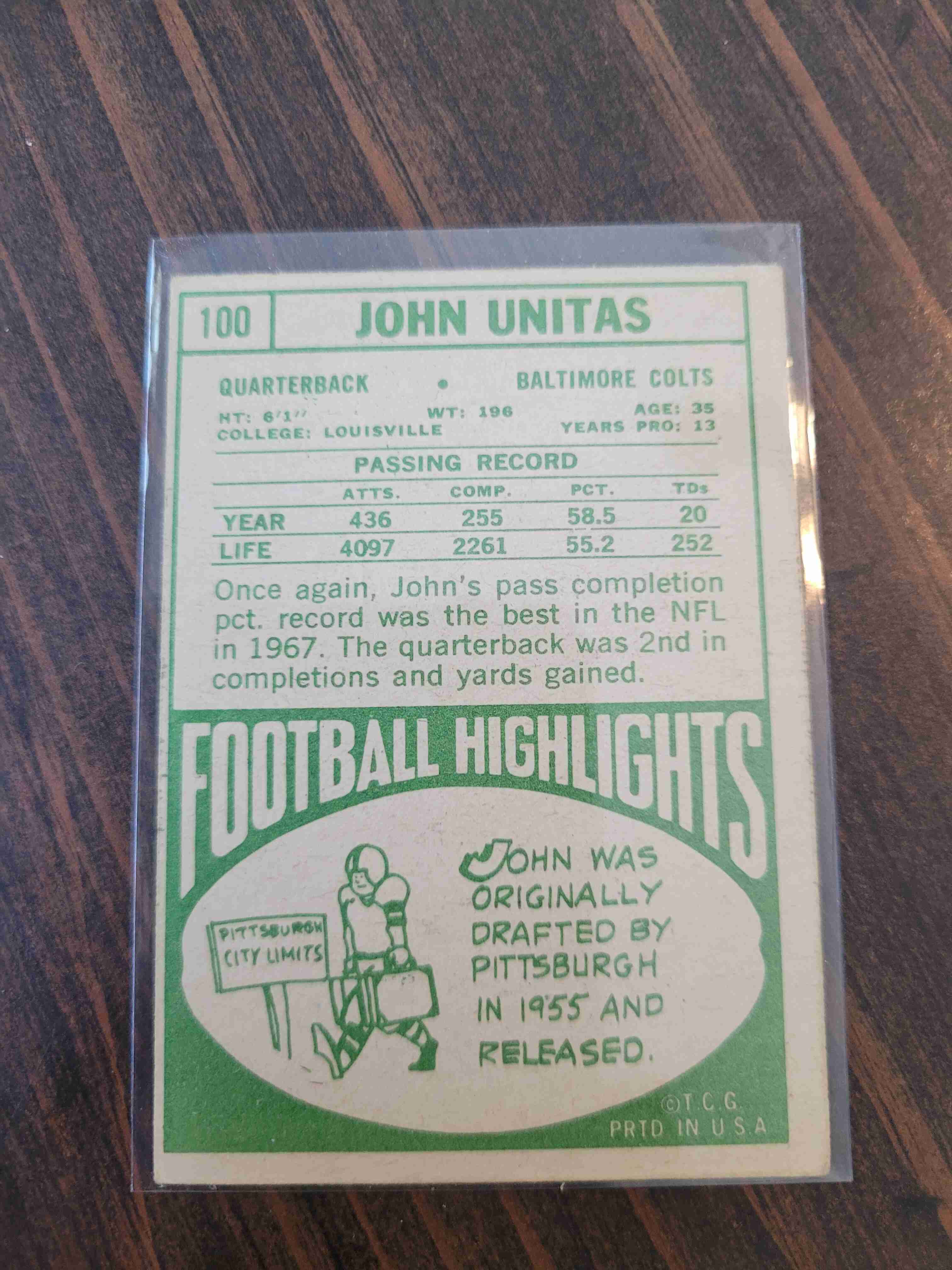 1968 TOPPS JOHNNY UNITAS #100