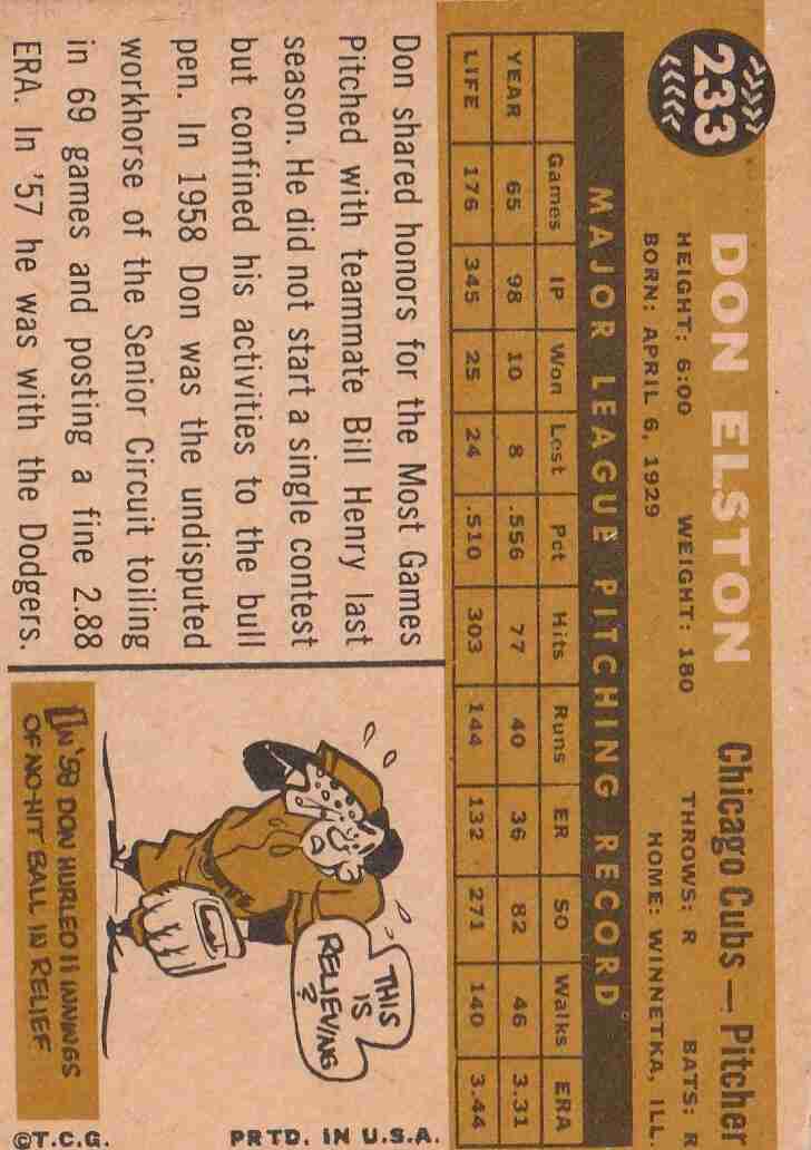 1960 Topps #233 Don Elston Cubs
