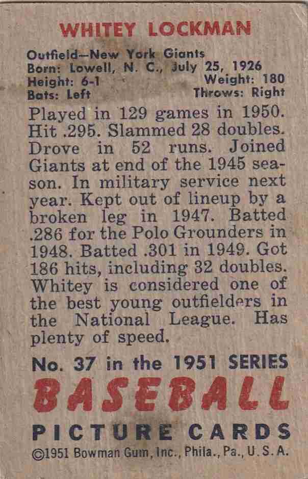 1951 Bowman #37 Whitey Lockman New York Giants