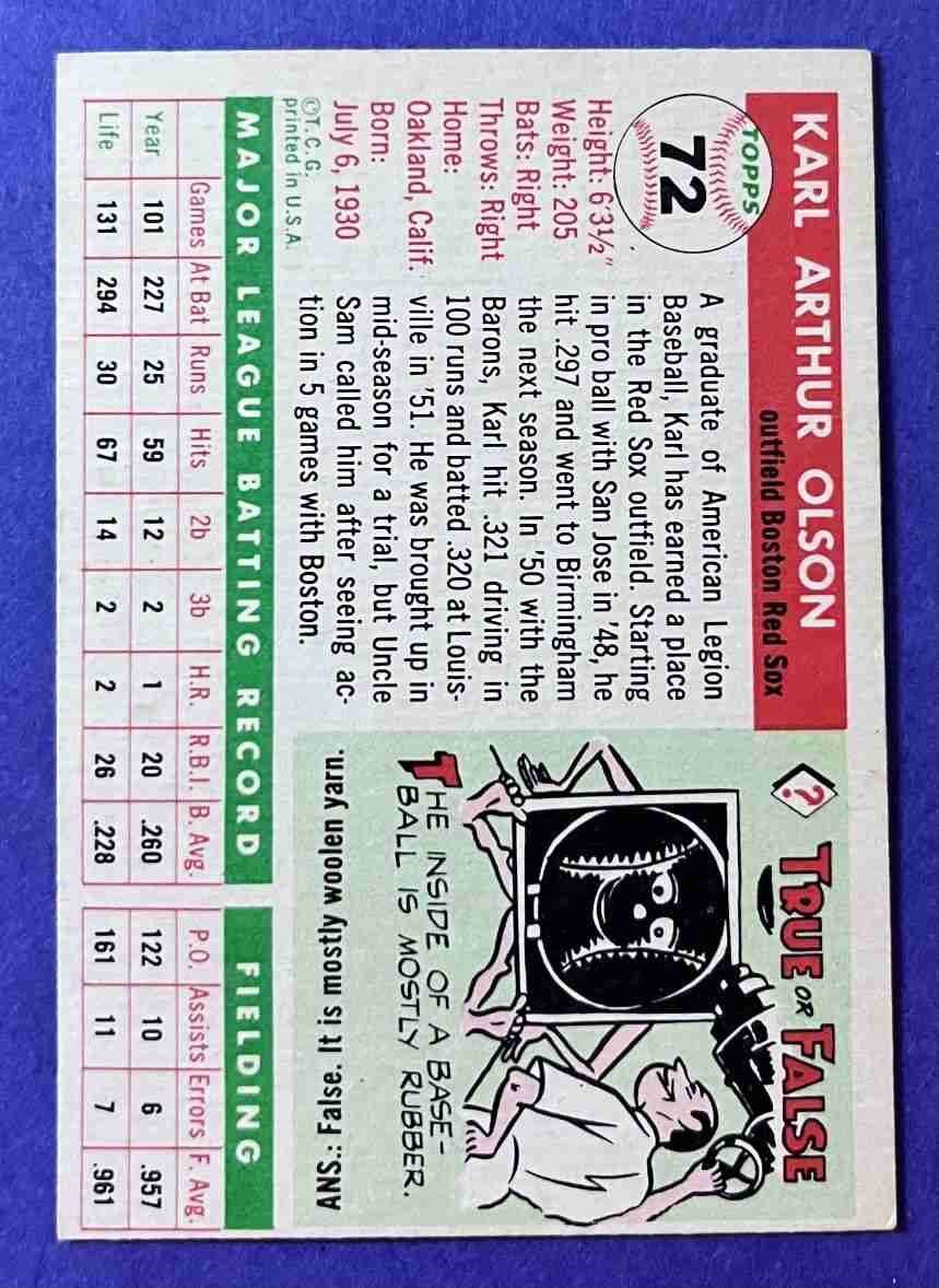 55 Topps KARL OLSON #72 +++