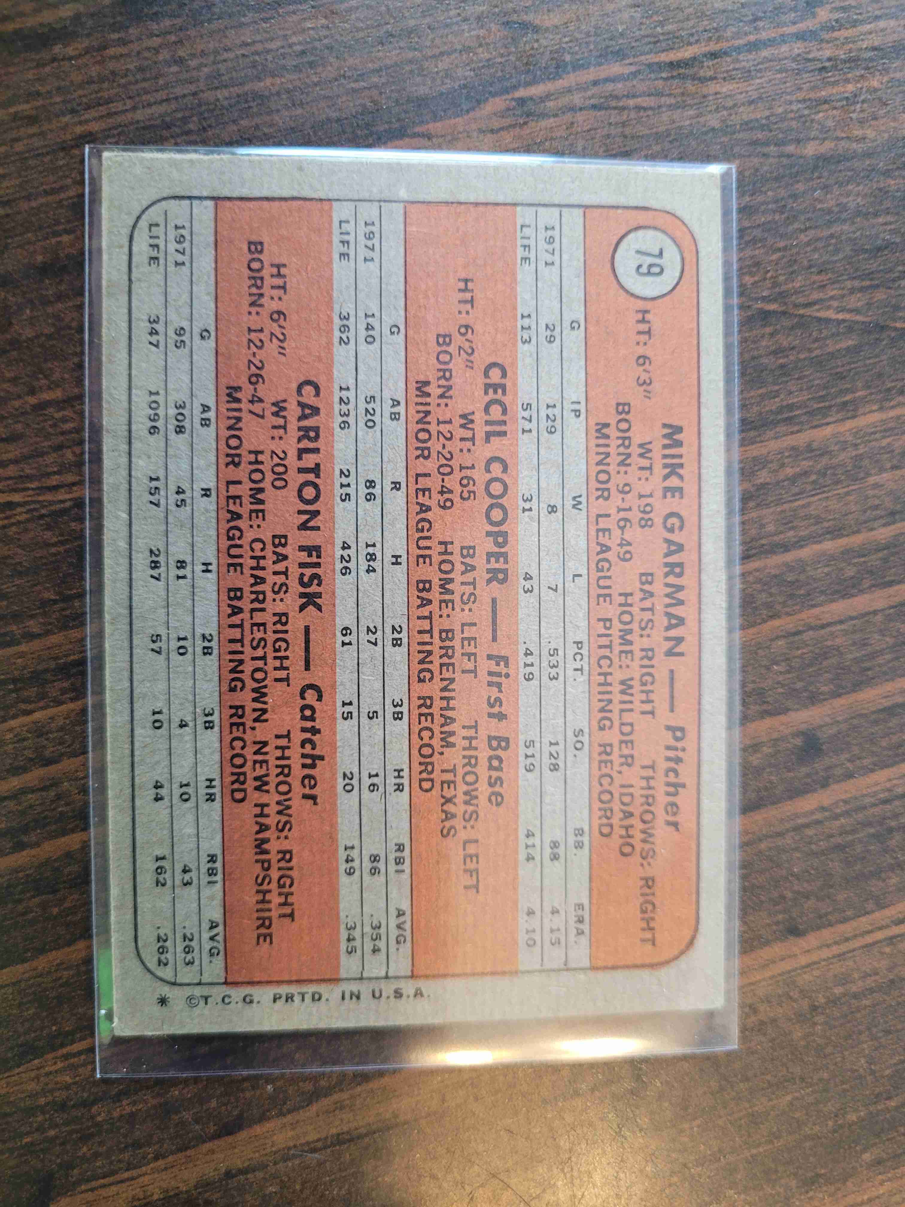 1972 TOPPS CARLTON FISK/CECIL COOPER #79 ROOKIE