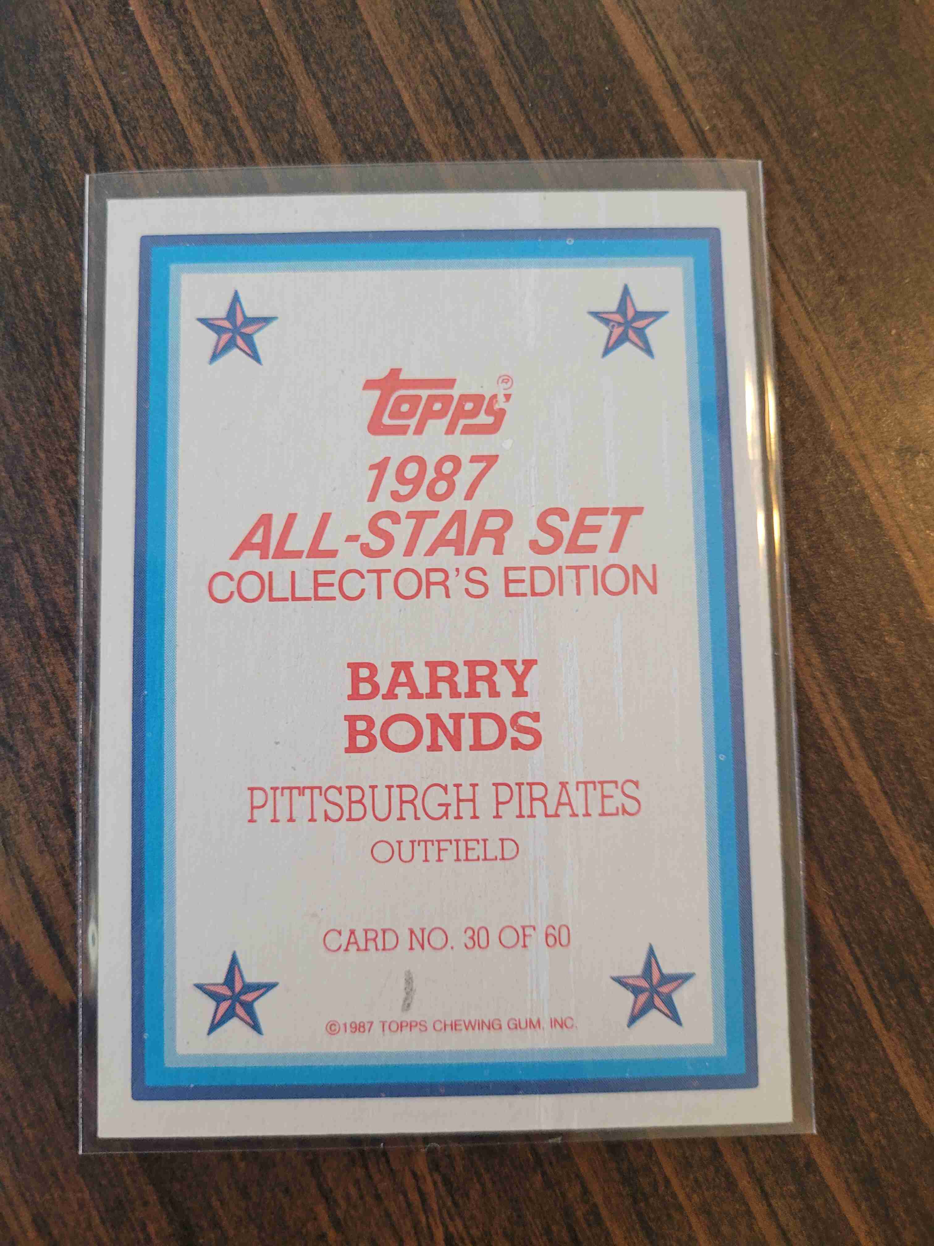1987 TOPPS ALL STAR SET BARRY BONDS #30 ROOKIE