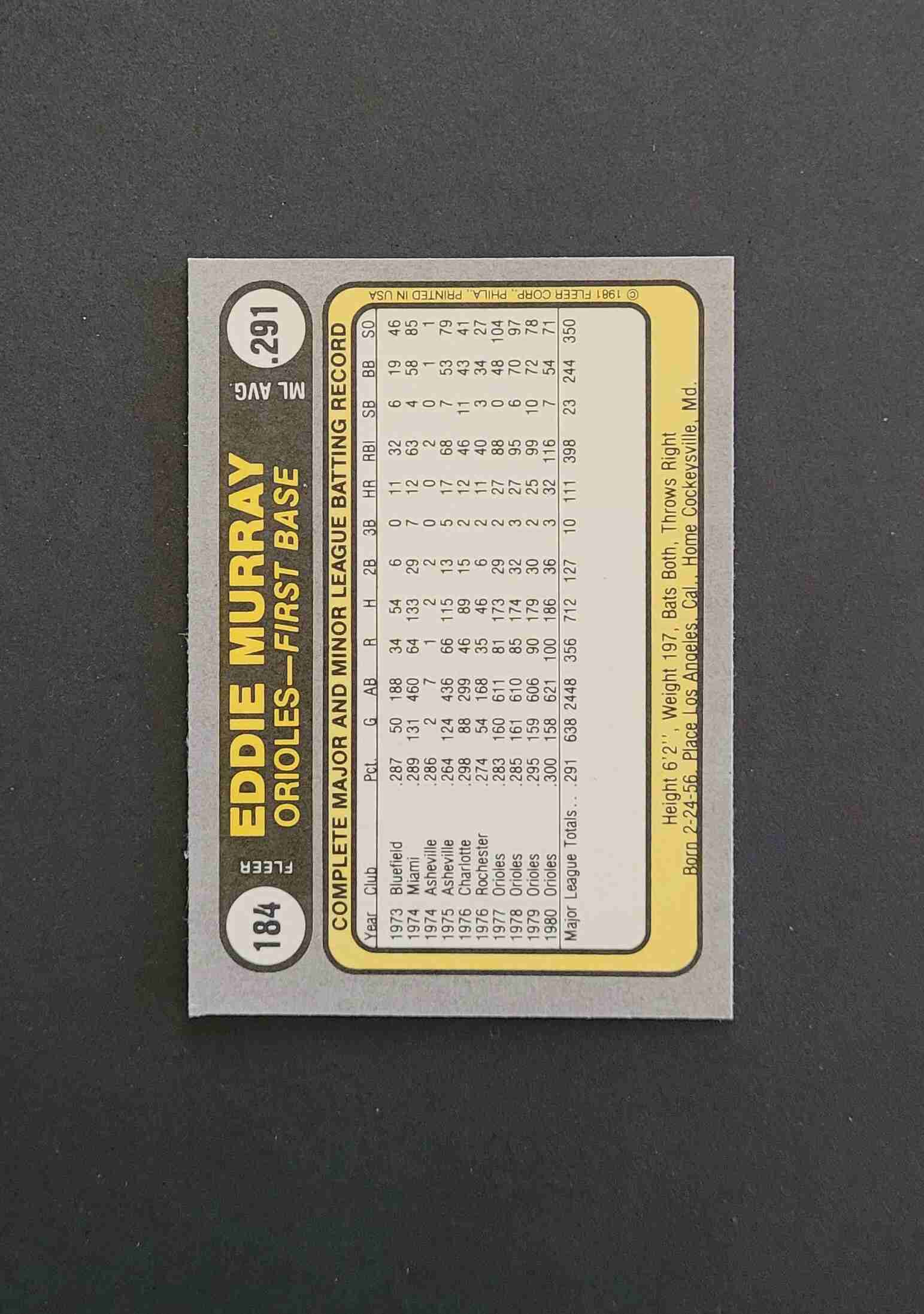 1981 Fleer #184 Eddie Murray Orioles