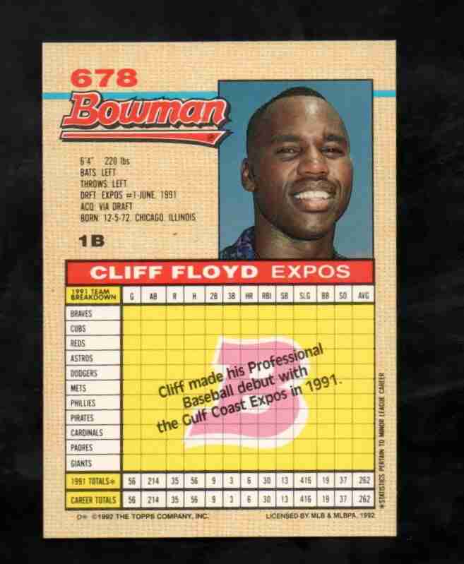 1992 Bowman # 678 CLIFF FLOYD NM/M