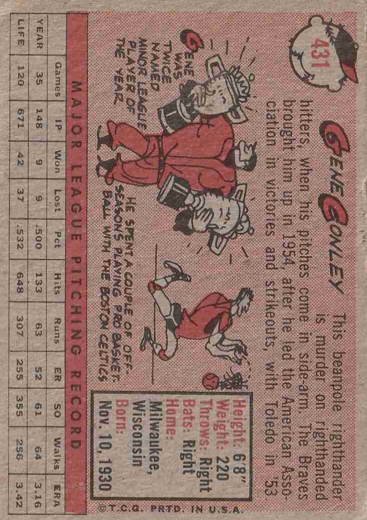 1958 Topps #431 Gene Conley Milwaukee Braves