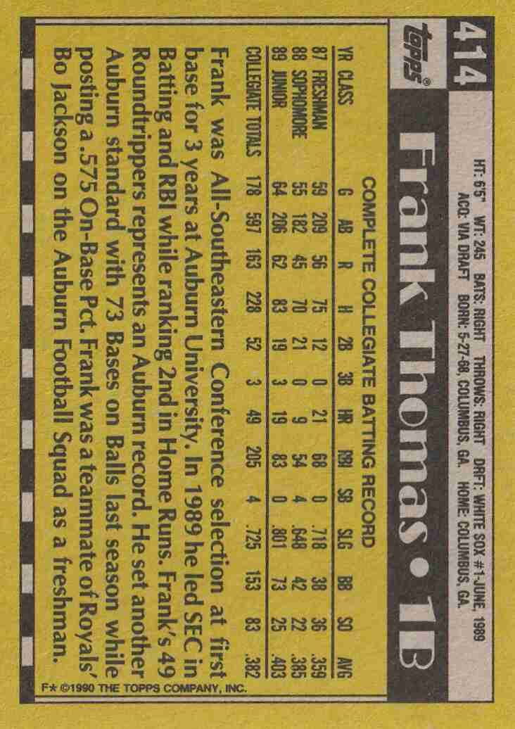 1990 Topps #414 Frank Thomas White Sox #1 Draft Pic