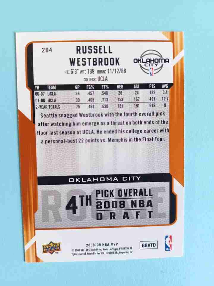 2008-09 UPPER DECK MVP RUSSELL WESTBROOK #204 RC