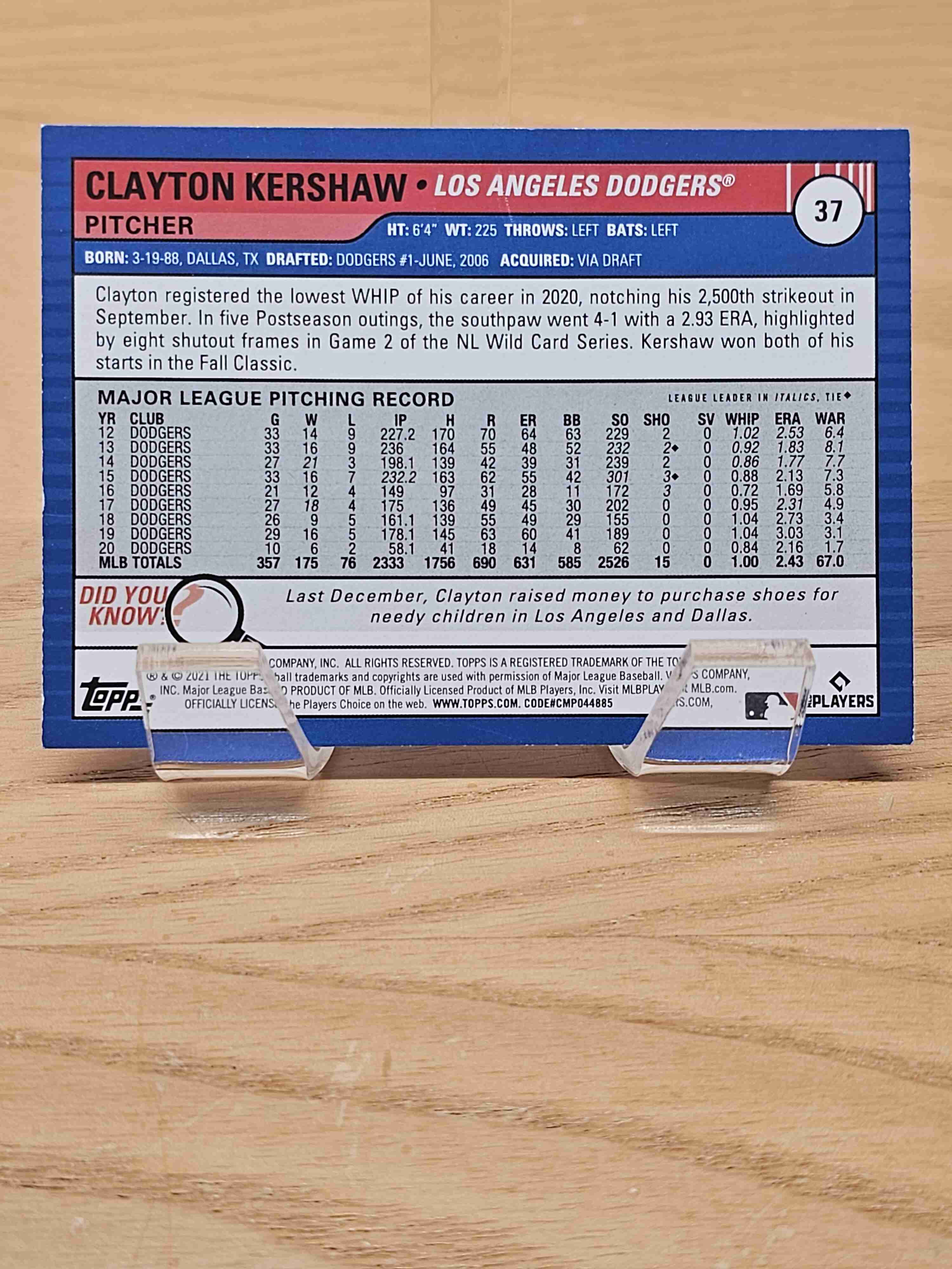 2021 Topps Big League Baseball Orange Clayton Kershaw Los Angeles Dodgers Card #37