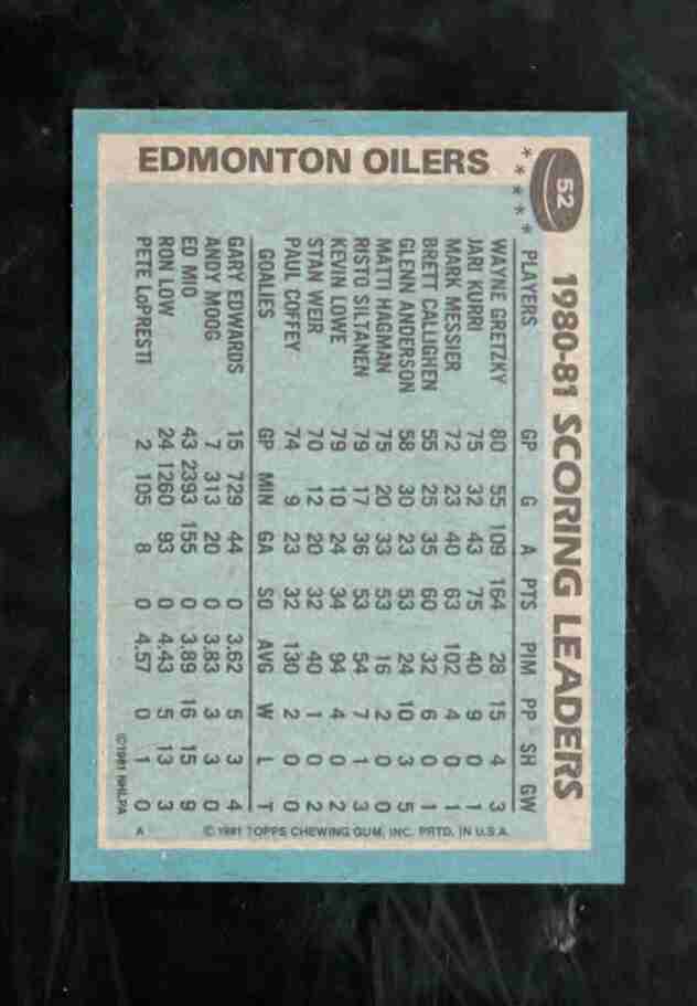 1981 Topps # 52 WAYNE GRETSKY Oilers Team Leader NM/M