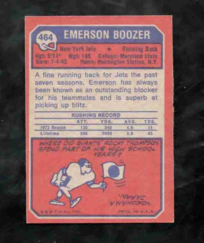 1973 Topps # 464 EMERSON BOOZER NY Jets EX+