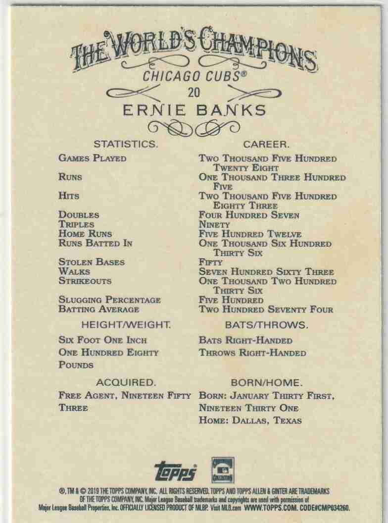 2-Topps Allen & Ginter 2019 Banks 2021 Maris