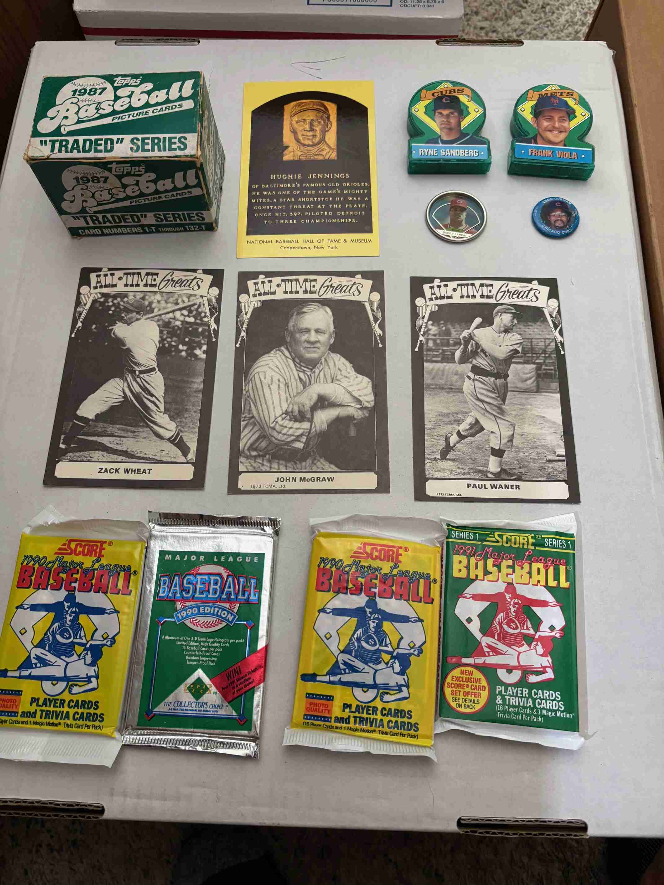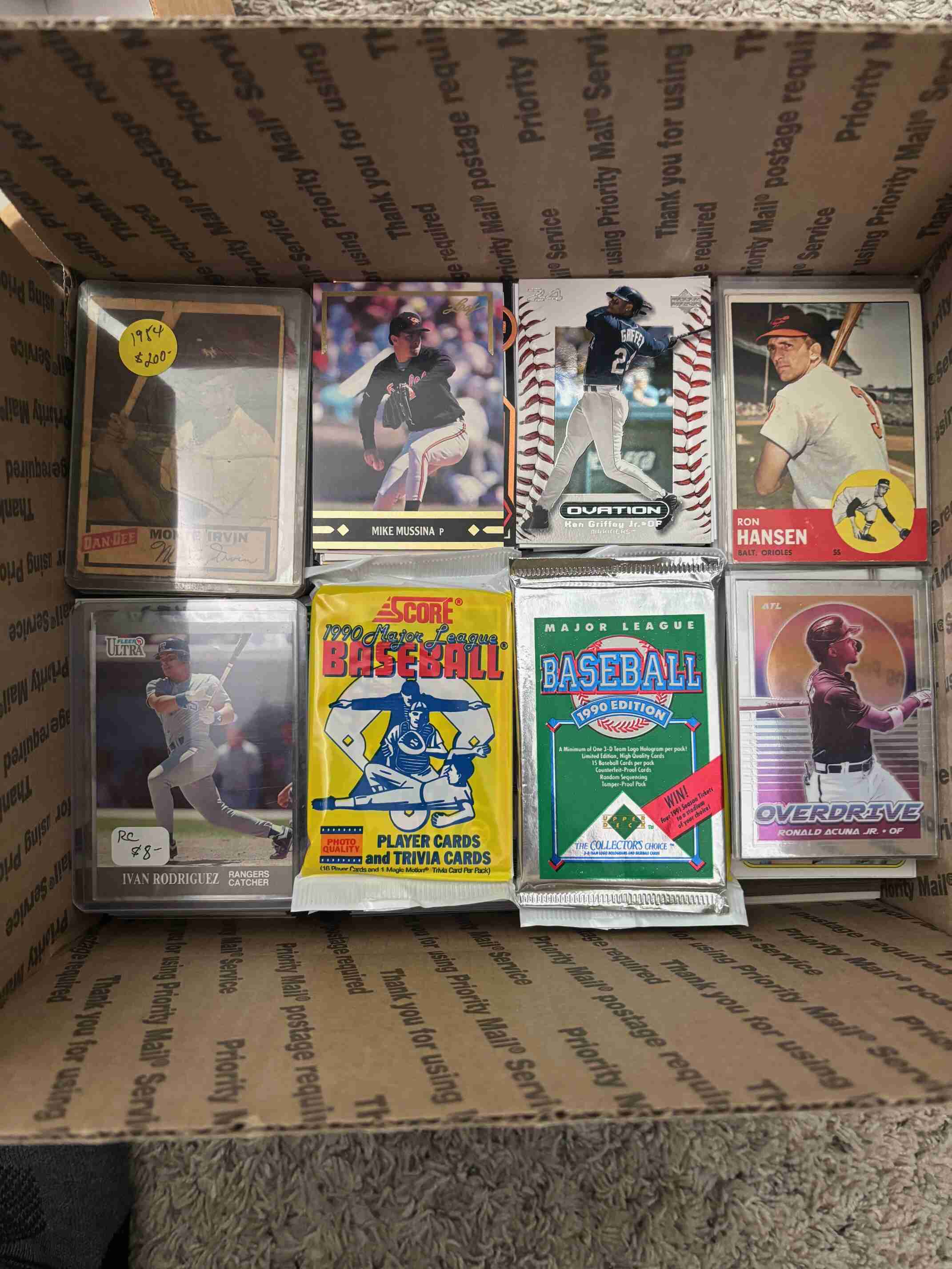 Huge clearance collection of 2500 Baseball cards featuring a perfect 1987 Topps Traded set, rare vintage postcards of all time greats, and loaded with vintage, Rookies, Stars, and opened packs, all in great condition. You will receive everything shown in the photos and more. I am having a complete clearance of my 2,000,000 card collection so please check out my other auctions for more great deals.