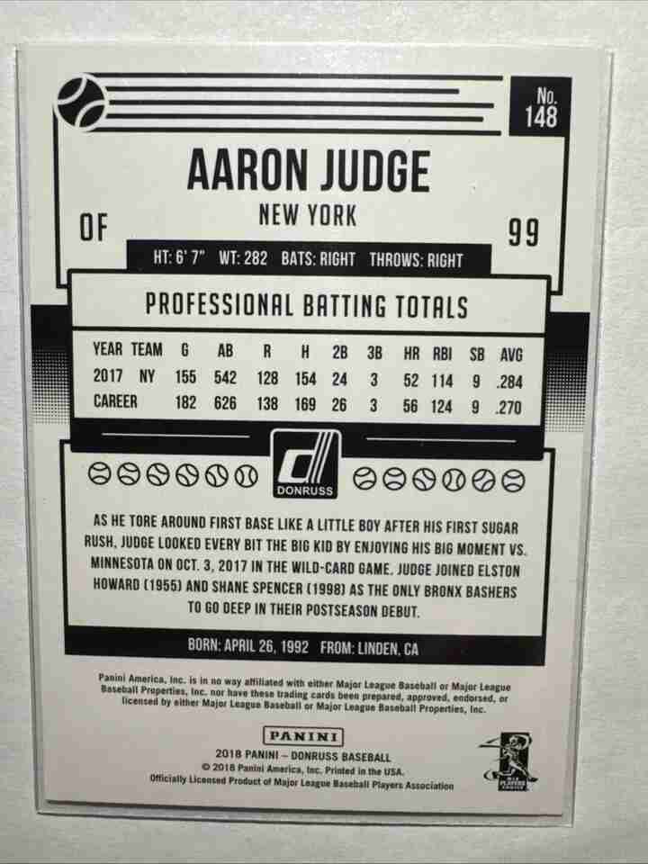 2018 Panini Donruss Aaron Judge #148 ROY New York Yankees
