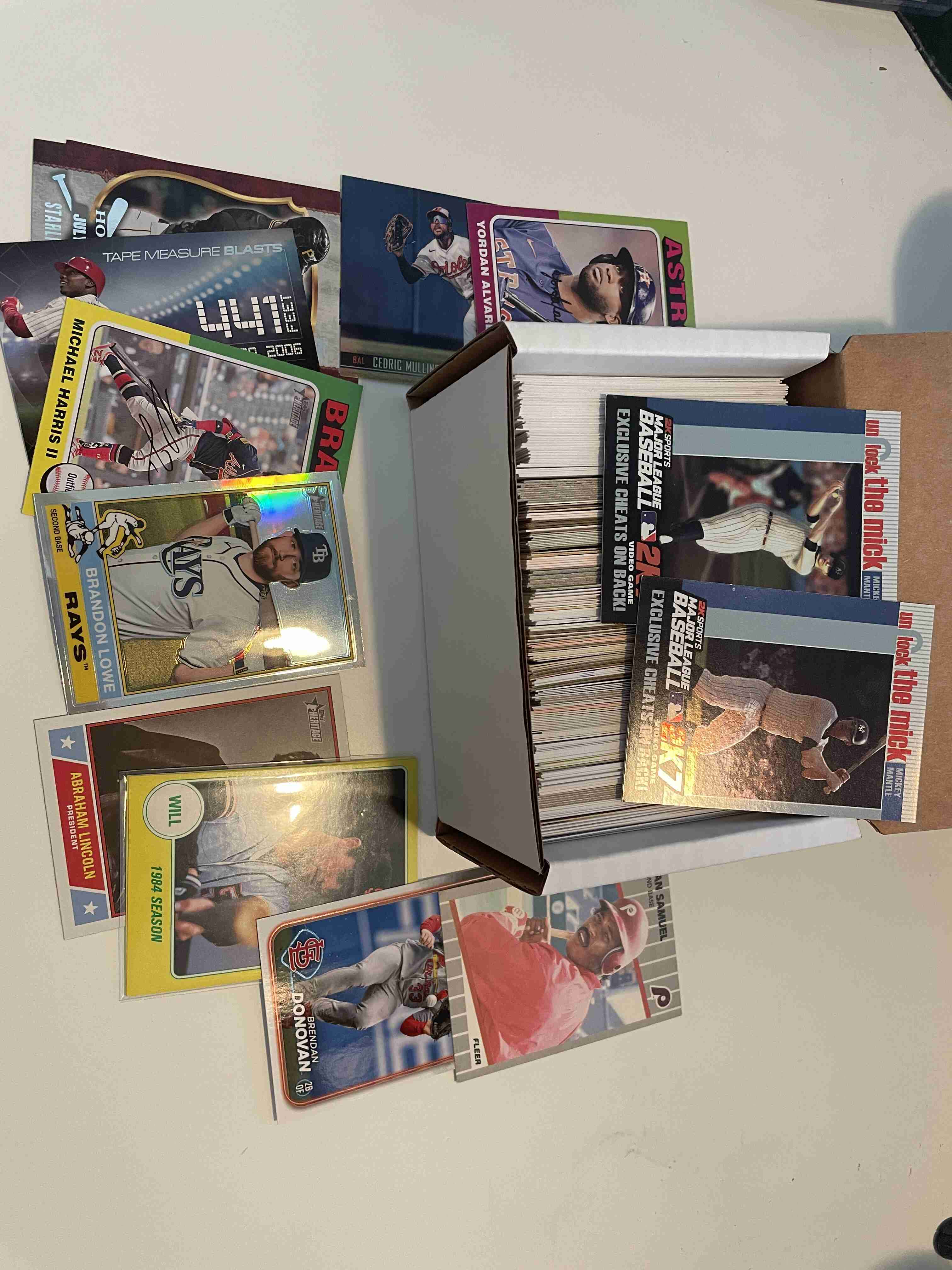 box full of cards, a grabbed a "pinch" and put them in there. Rc, Stars, both new and older. See pics for some examples