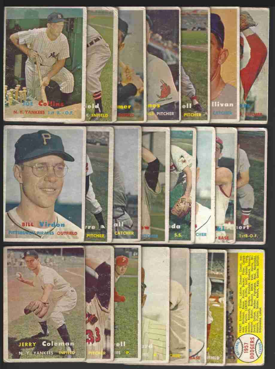 361,364,365,377,382,400,418,427,449,452,473,475,483,487,504. Hi No's-#524,556. Nice large lot of late 1950's Baseball cards. The 1957 lot includes (7) scarce mid-series cards. Typical for this era, cards are in the lower-grade range due to corner wear. Some have wrinkle/crease. Cards have bright color. Decent lot if you don't mind cards with some corner wear. Please review scans carefully for condition.