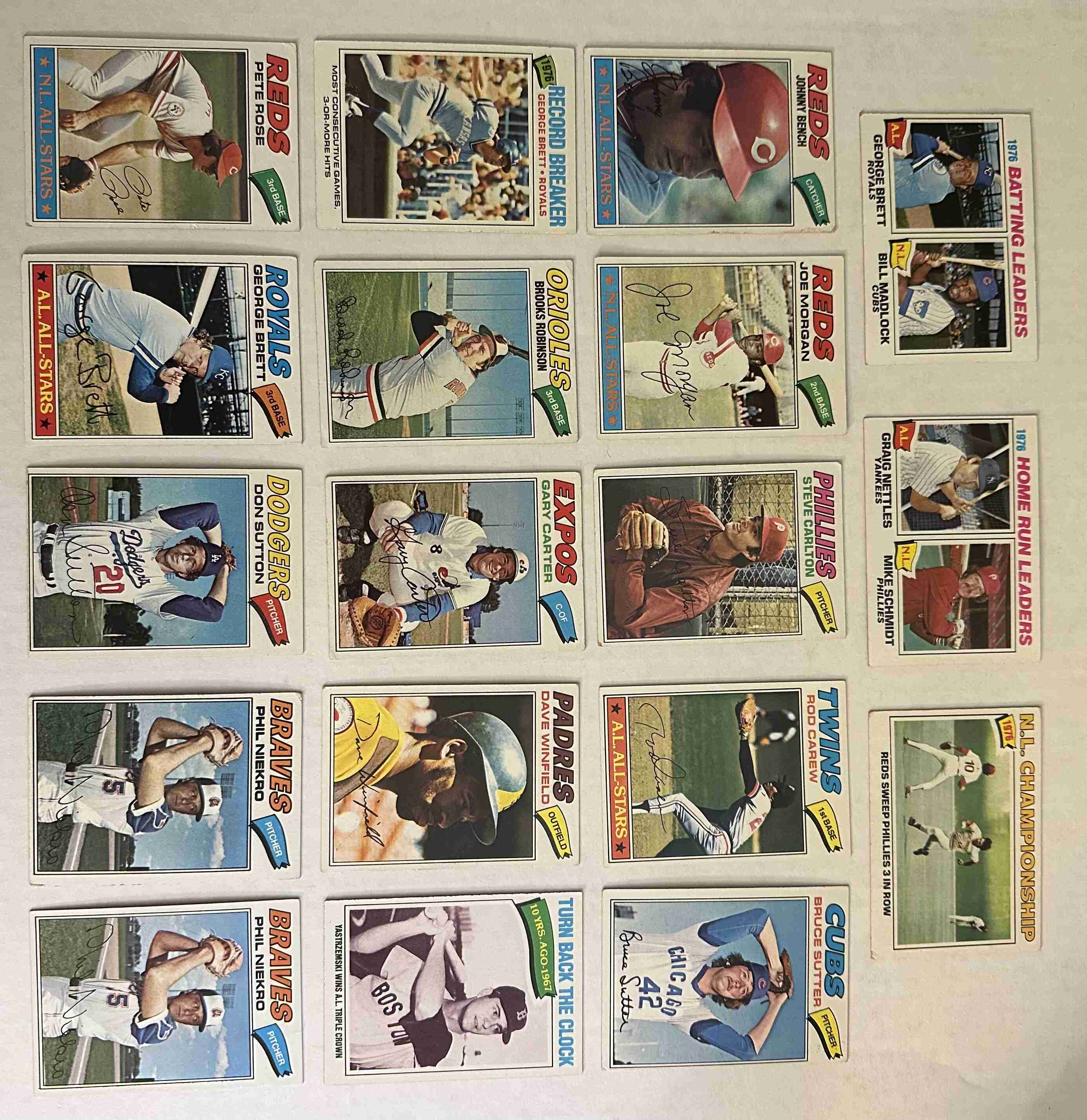 1 Brett/Madlock, 2 Nettles/Schmidt, 70 Bench, 100 Morgan, Carlton 110, 120 Carew, 144 Sutter, 231 Brett, 277 Reds NL Champ, 285 Robinson, 295 Carter, 390 Winfield, 434 Yastrzemski, 450 Rose, 580 Brett, 620 Sutton, 615 Niekro x2