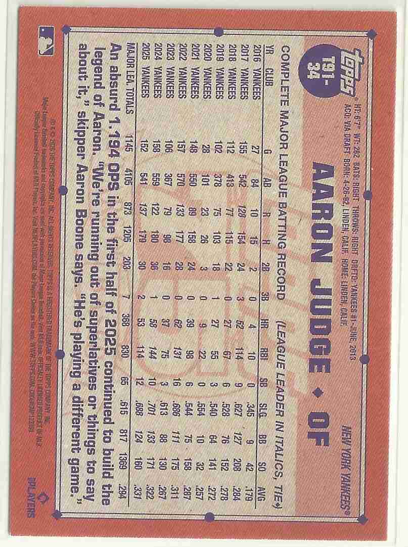 2026 Topps 1991 Topps #T91-34 AARON JUDGE
