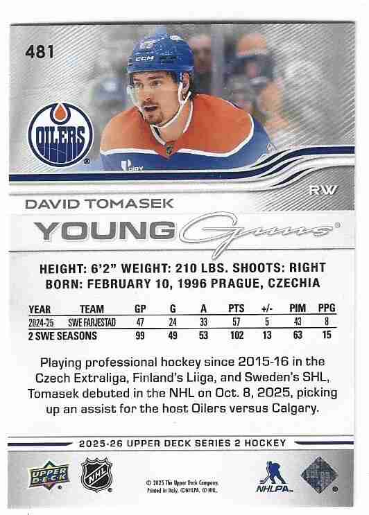 2025/26 UD 2 #481 DAVID TOMASEK YOUNG GUNS