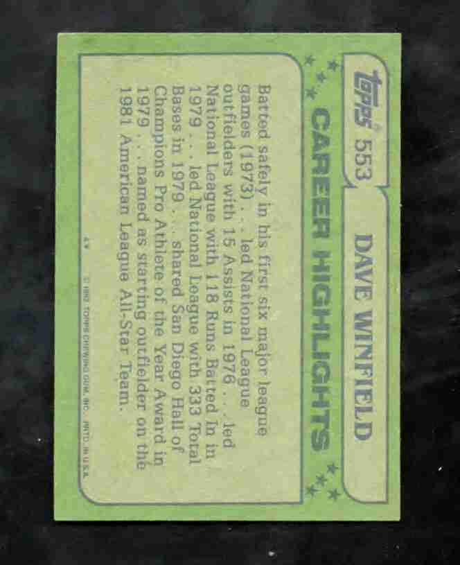 1982 Topps # 553 HOFer DAVE WINFIELD NY Yankees NM