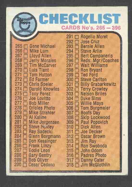 1973 TOPPS CHECKLIST 338 - UNMARKED