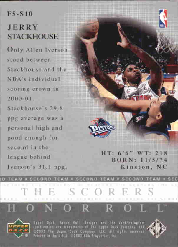 2001-02 Upper Deck Honor Roll Fab Five Scorers #10 Jerry Stackhouse