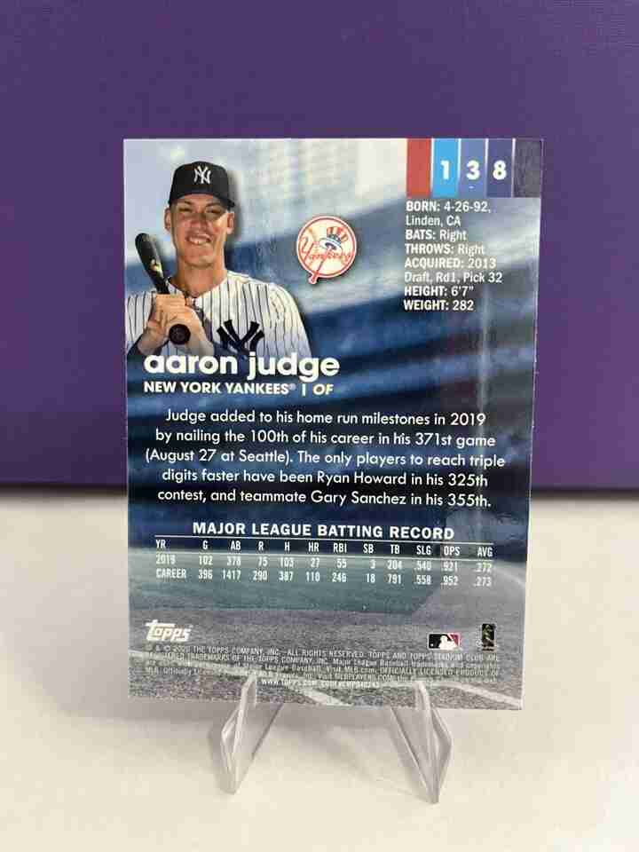 Topps 2020 Stadium Club Aaron Judge Yankees $138