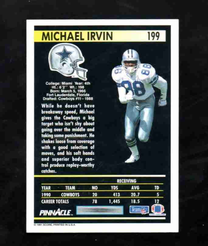 1991 Pinnacle # 199 MICHAEL IRVIN Dallas Cowboys NM/M