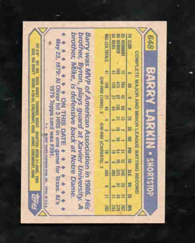 1987 Topps # 648 BARRY LARKIN Reds NM/M