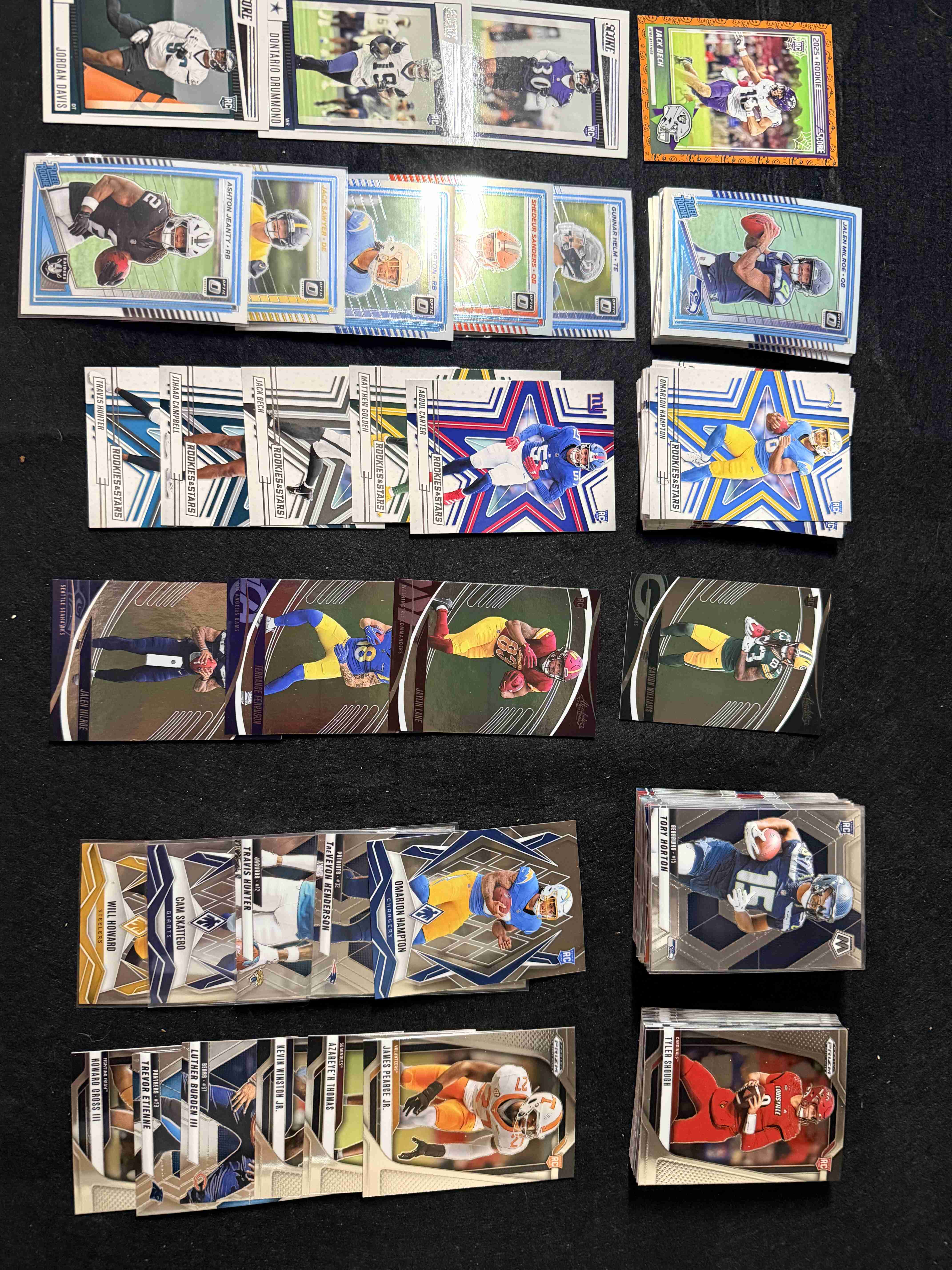 105 rookie cards from panini prizm, mosaic,optic,absolute,rookies &stars and score