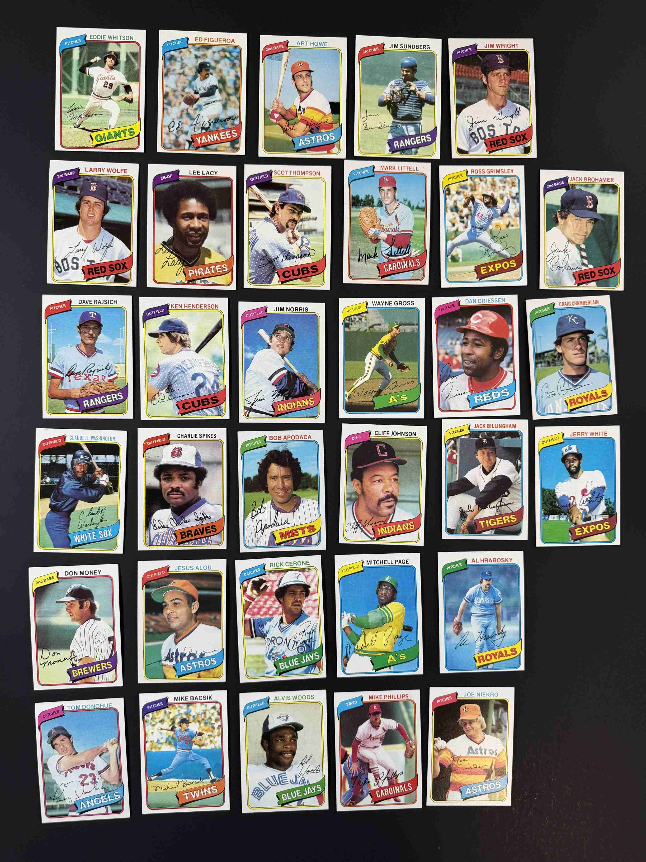150 different 1980 Topps baseball in high grade. Condition ranges from EX-MT to MINT! Includes Pete Rose, Mike Schmidt, Dave Parker & Joe Morgan. Very nice looking cards.
