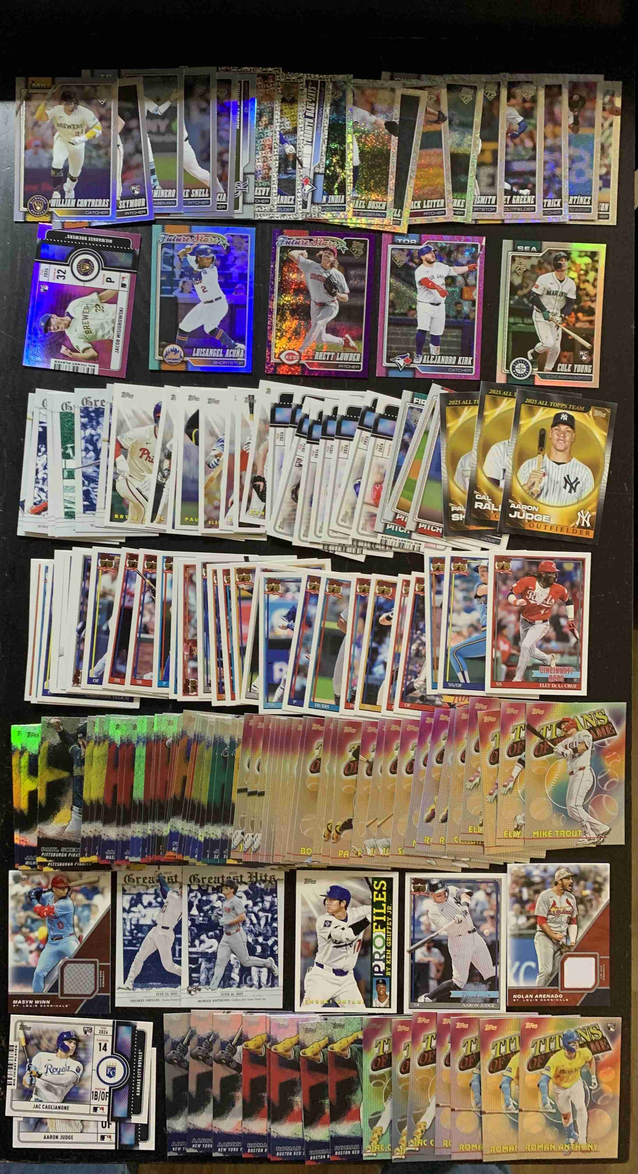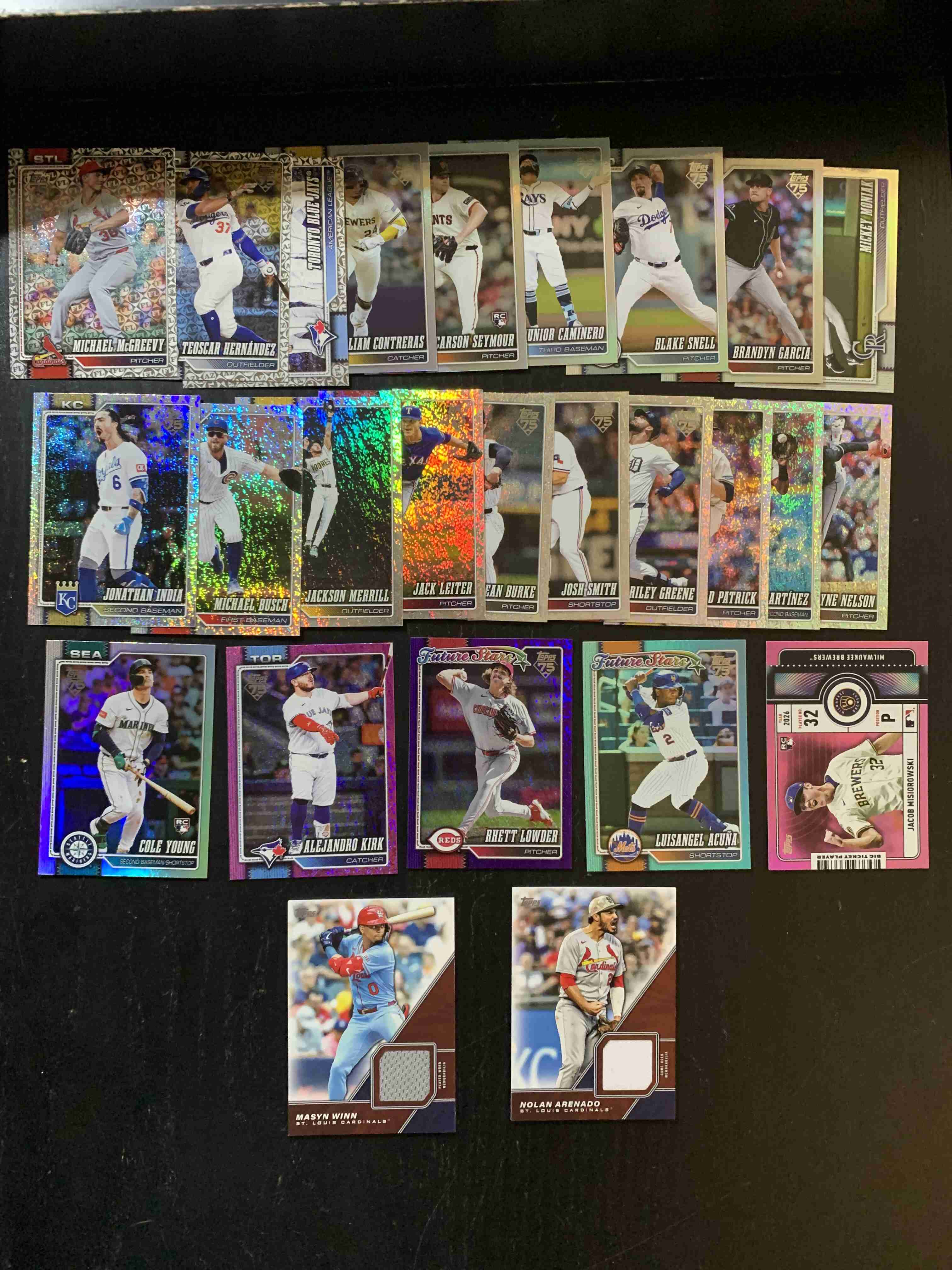 For auction is a lot of roughly 175 Inserts and Parallel Cards from 2026 Topps Series 1. Lot has a nice mixture of Stars and Rookies, Inserts and Parallels, including a serial numbered parallel and two relic cards. Lot does contain multiples. Overall, cards are NM or better though there may be some outliers. Please refer to photo for more details. Cards will ship securely via USPS with Tracking. Be sure to check out my other auctions, there's some other great lots including some of 2026 Products!