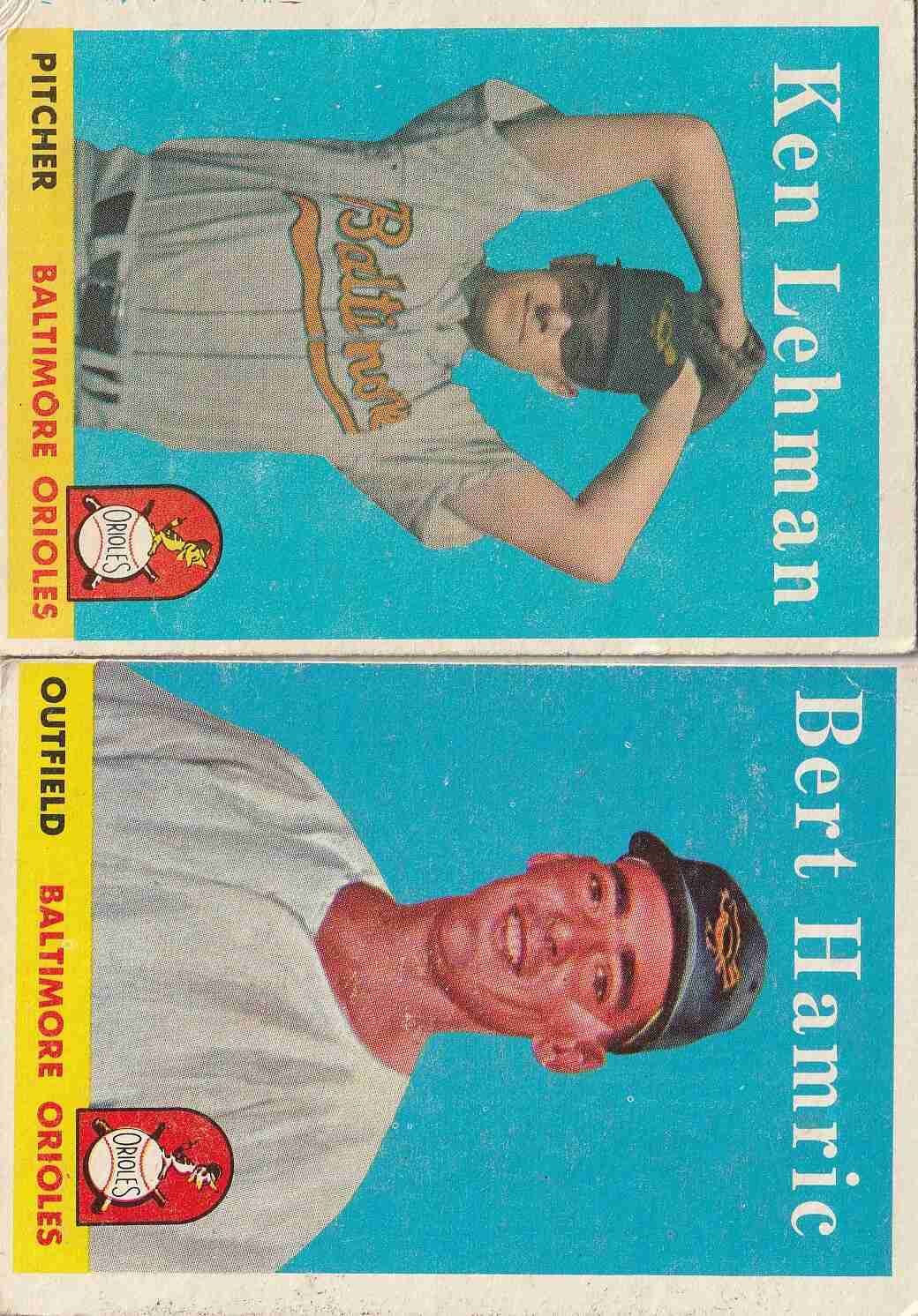 #67 Joe Ginsberg (EX+/Better)OC #105 Billy Gardner (EX/NM) #141 Ken Lehman (EX) corner wear #336 Bert Hamric (EX/EX+) OC #381 Hal Brown (VG/VG+) several mild blemishes