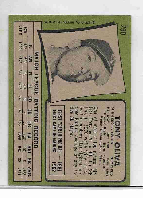 1971 Topps #290 ~ Tony Oliva Minnesota Twins HOF