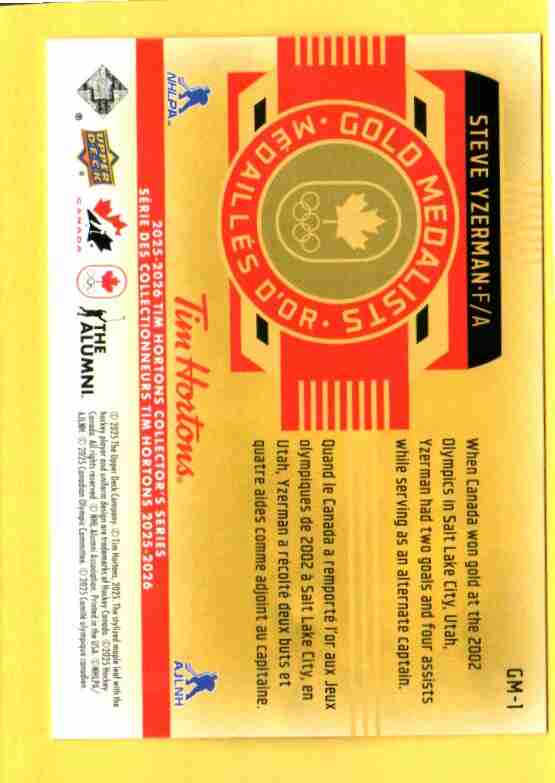 Steve Yzerman #GM-1 2025 Upper Deck Tim Hortons Team Canada Gold Medalist