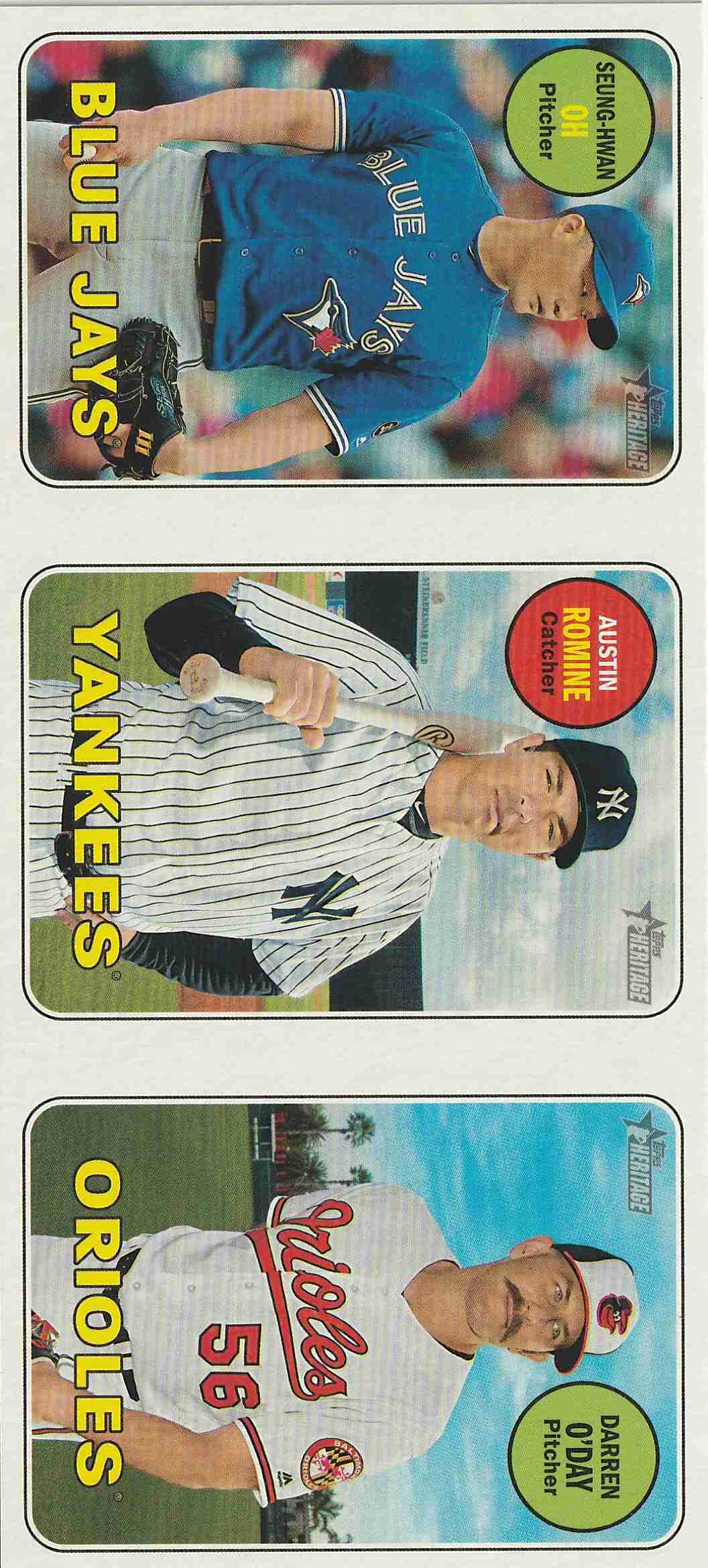 2018 Topps Heritage Advertising Panels Seung-Hwan Oh/Austin Romine/Darren O'Day/Ryan Braun back.